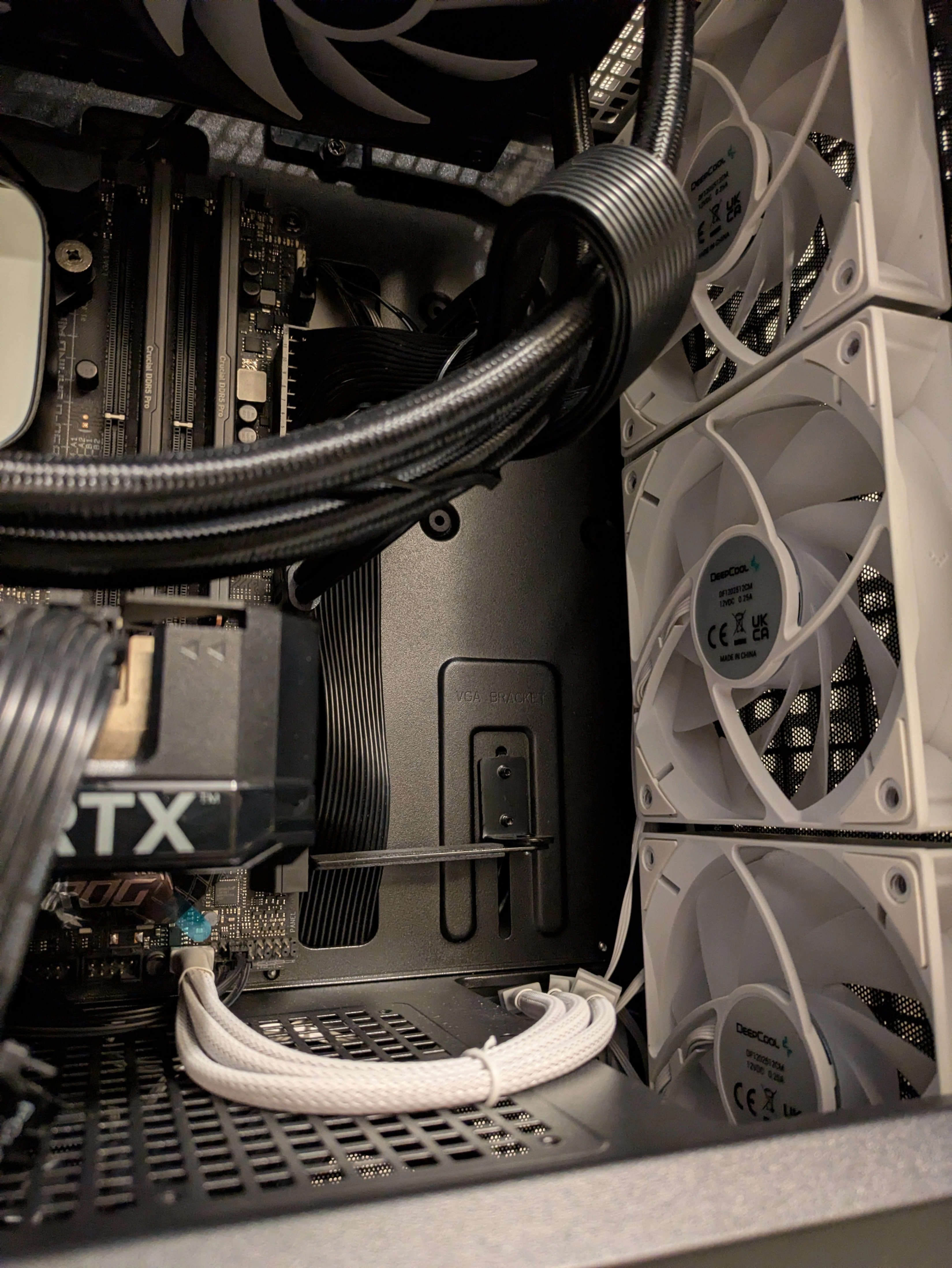 Fans — 6x 120mm DeepCool (2x RGB AIO top, 3x RGB Case front, 1x back)