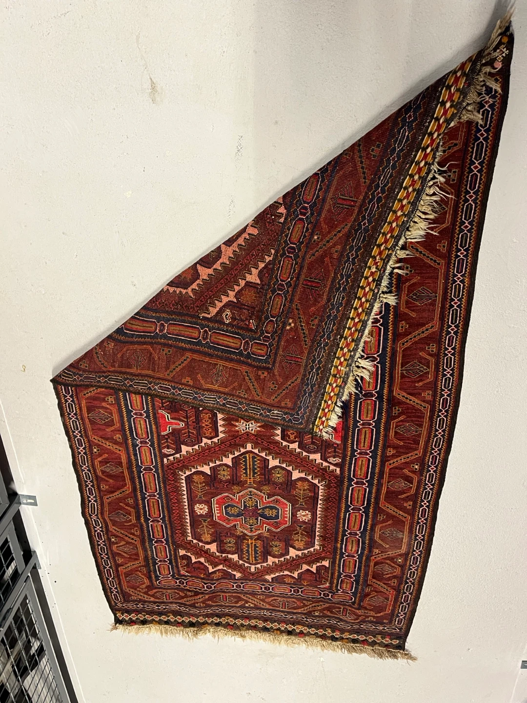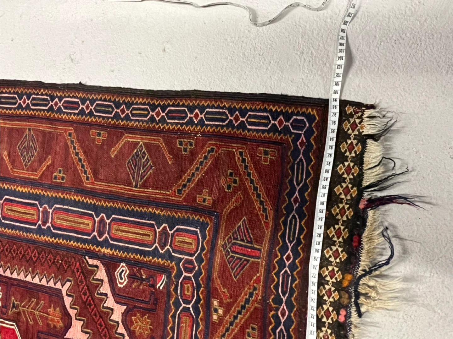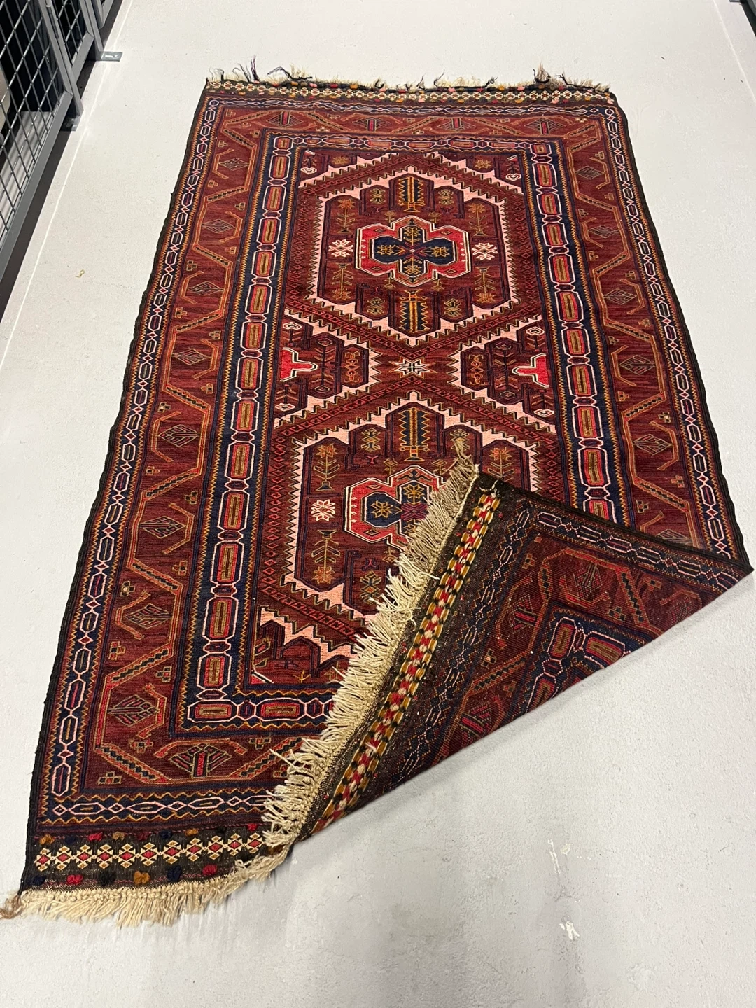 Selling a beautiful knotted Afghan tribal rug. It has a unique pattern and design. The rug measures 100 cm x 177 cm.