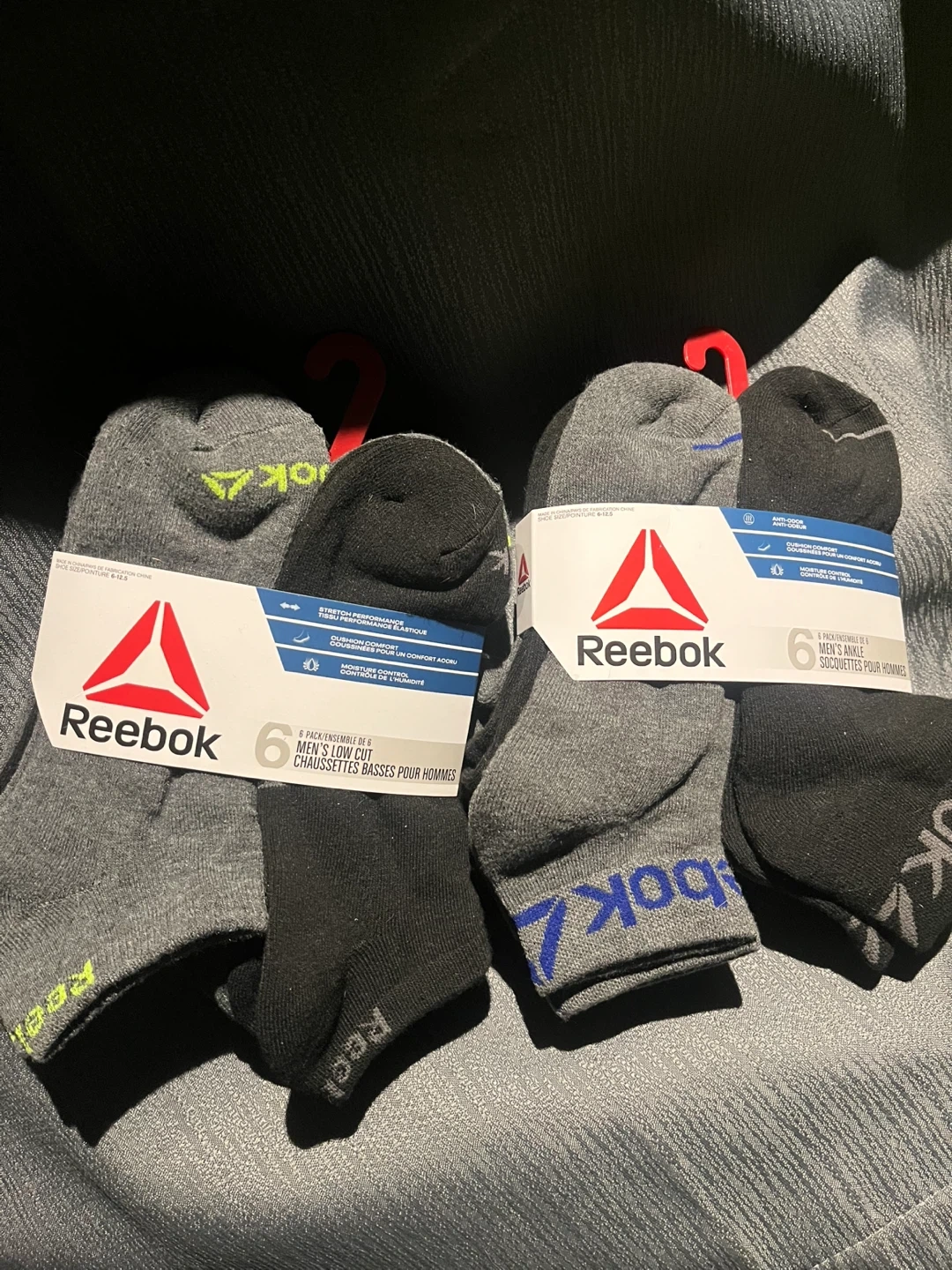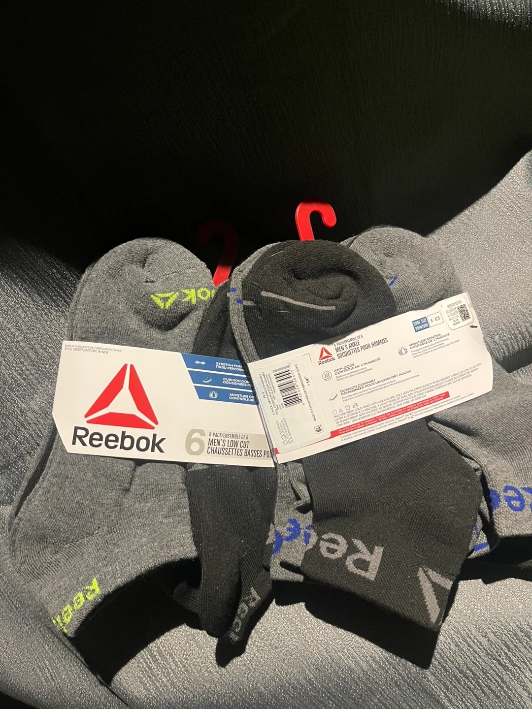 Selling a brand new 6-pack of Reebok men's low cut socks. These are great for everyday wear and come in a mix of grey and black colours. Perfect for keeping your feet comfy!