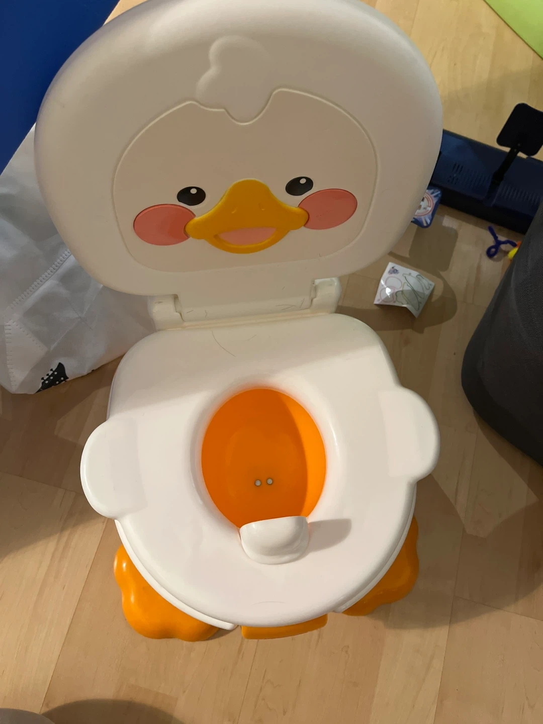 Here's a gently used Fisher-Price Duck Potty Seat! It's in great condition and ready for its next user. This adorable potty seat makes potty training a bit more fun with its cute duck design!