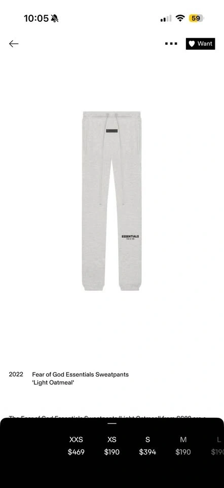 Fear of God Essentials Sweatpants 'Light Oatmeal' Size US Men’s XS