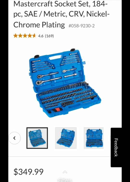 MASTERCRAFT SOCKET SET184 PC,NICKEL-CHROME PLATING $149.99