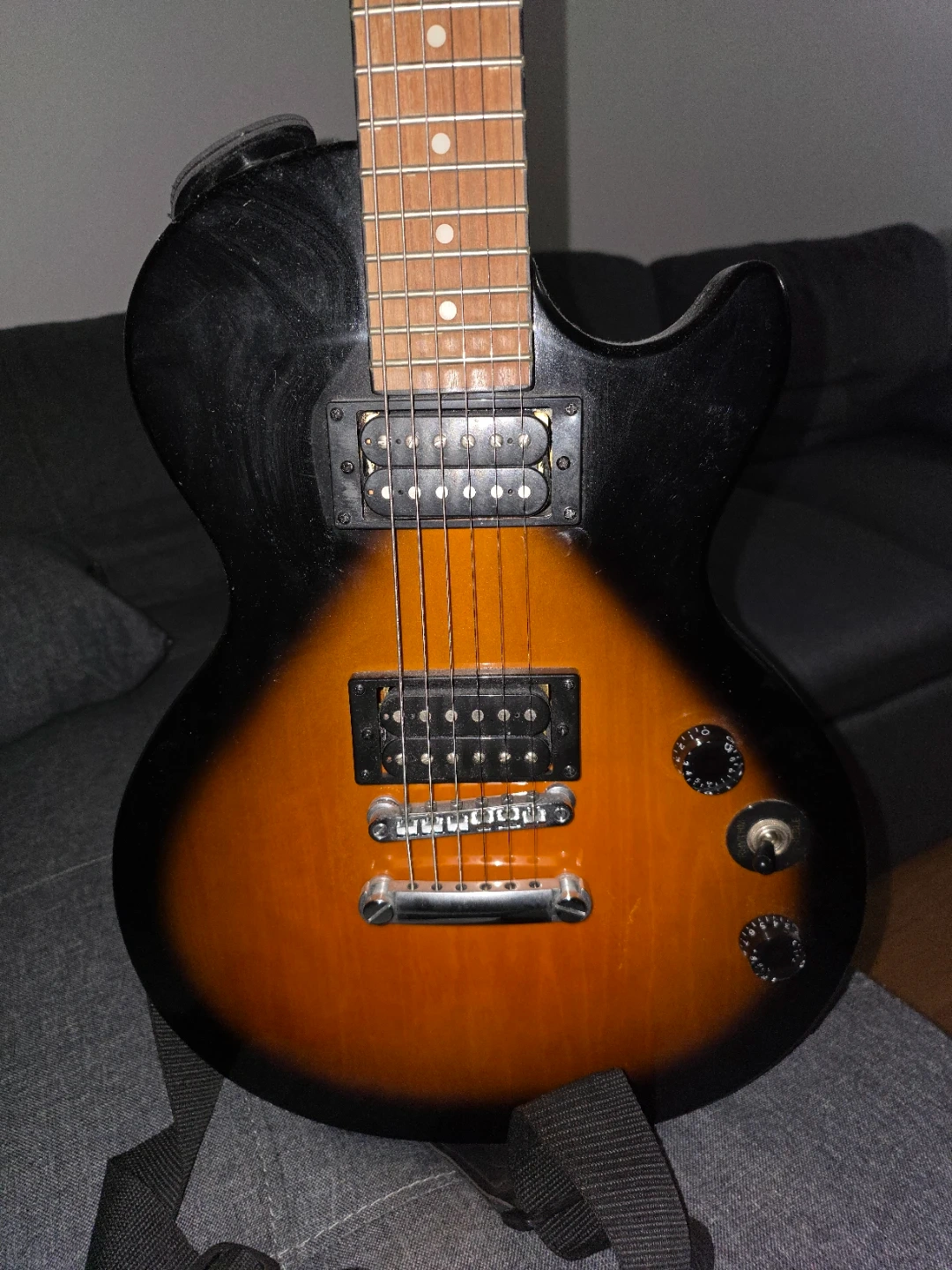 Selling an Epiphone Les Paul Special II electric guitar. It's in good condition and ready for a new player! The guitar features the classic Les Paul design, known for its tone and playability. Comes with a strap