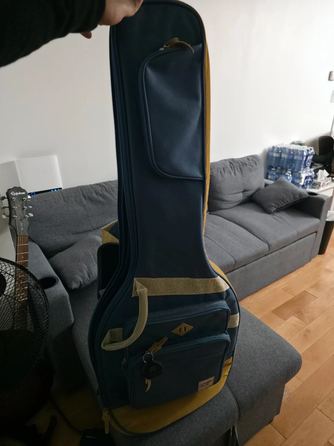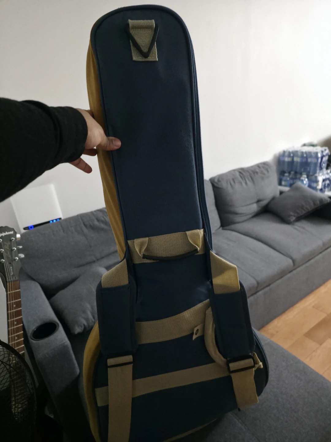 Selling a guitar case in blue and yellow. It's in great condition and ready to protect your guitar!
