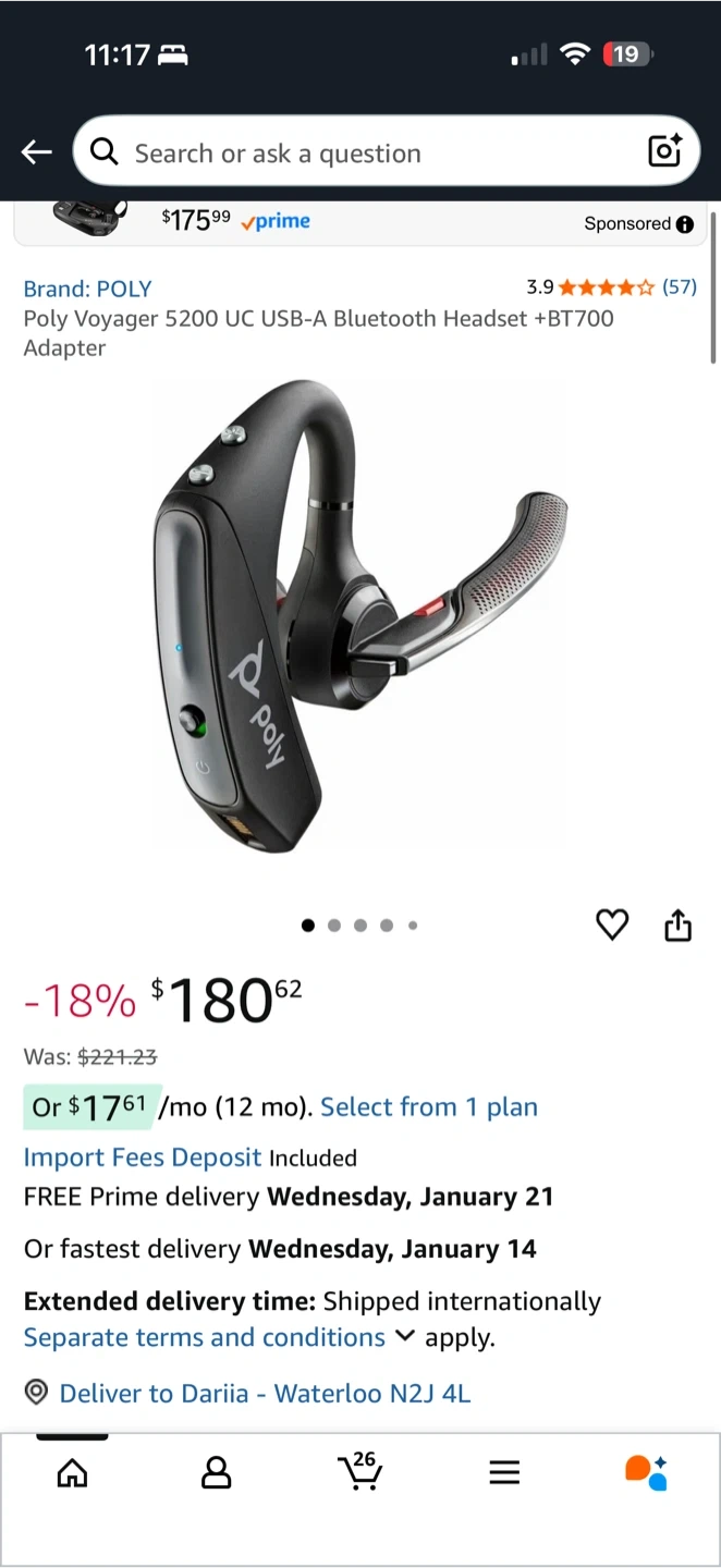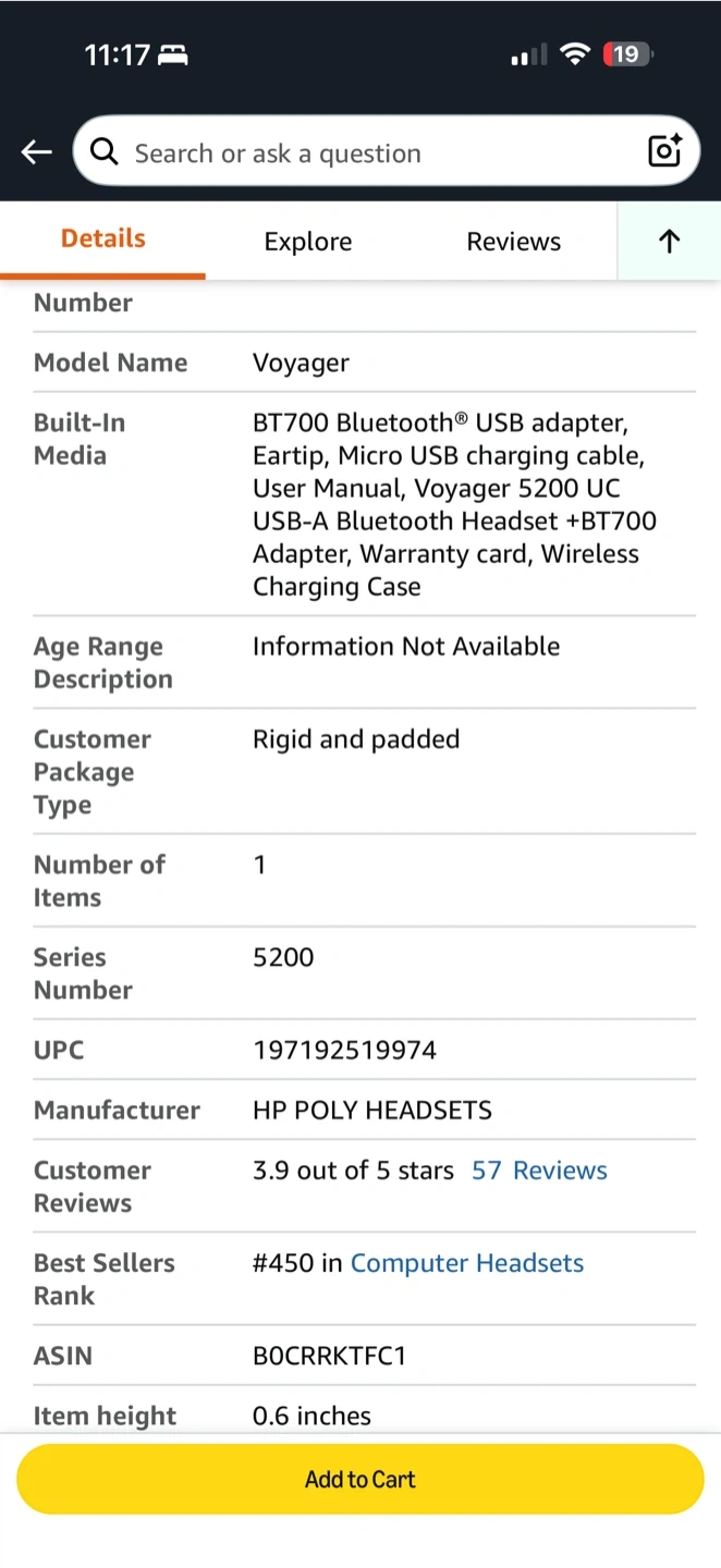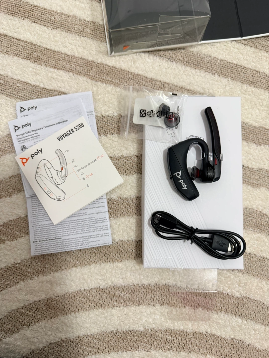 Brand new Poly Voyager 5200 UC professional Bluetooth headset with BT700 USB Bluetooth adapter.