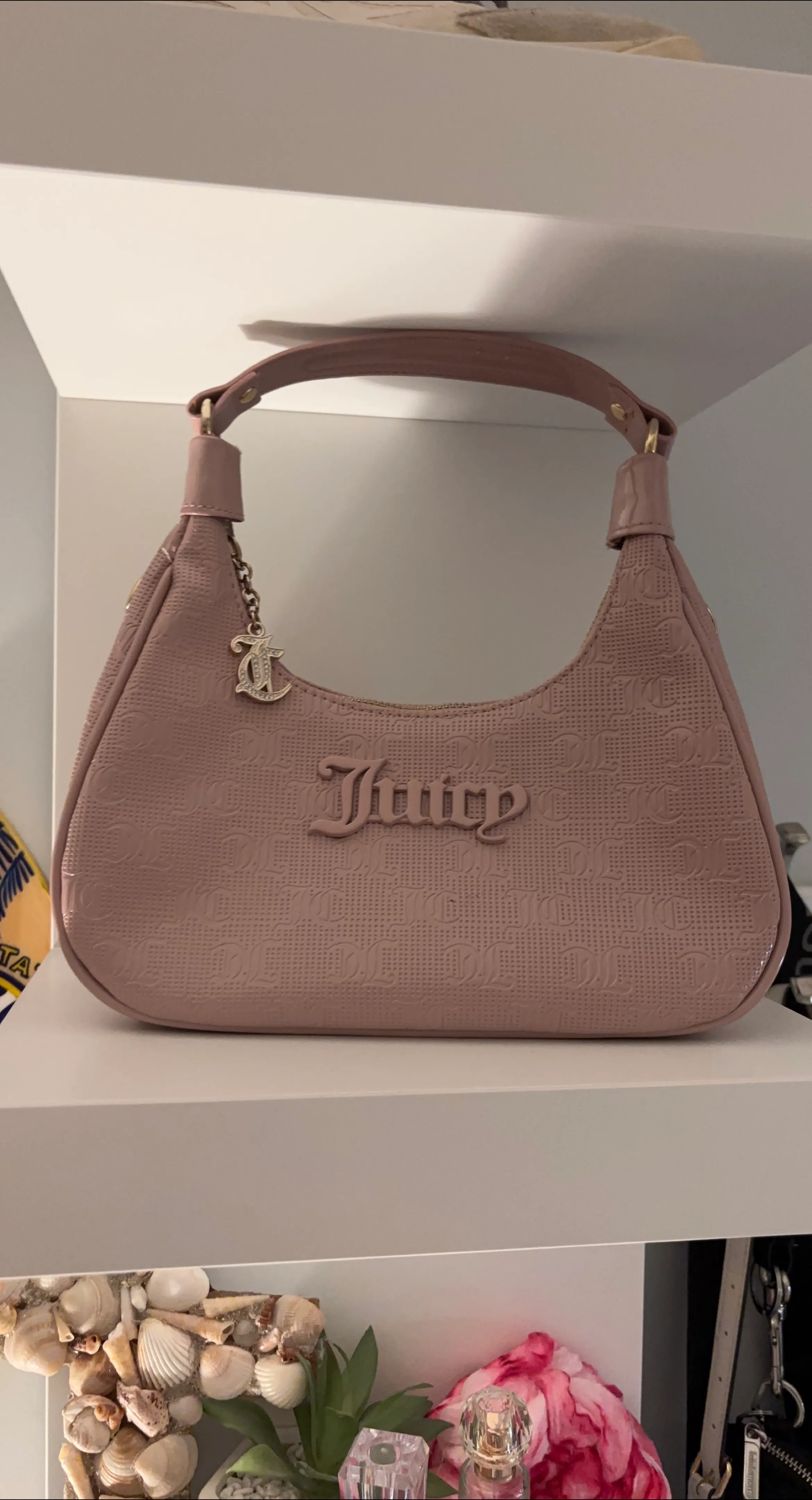Selling a cute Juicy Couture hobo bag! It's in great condition and perfect for a Y2K look. The bag is a light pink colour and has the Juicy logo on the front. It's a fun and stylish accessory!