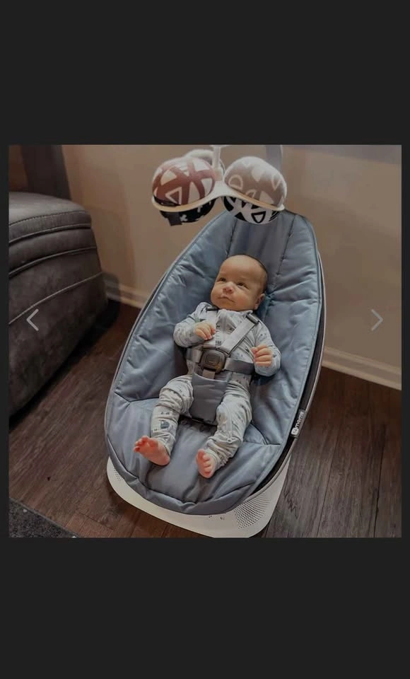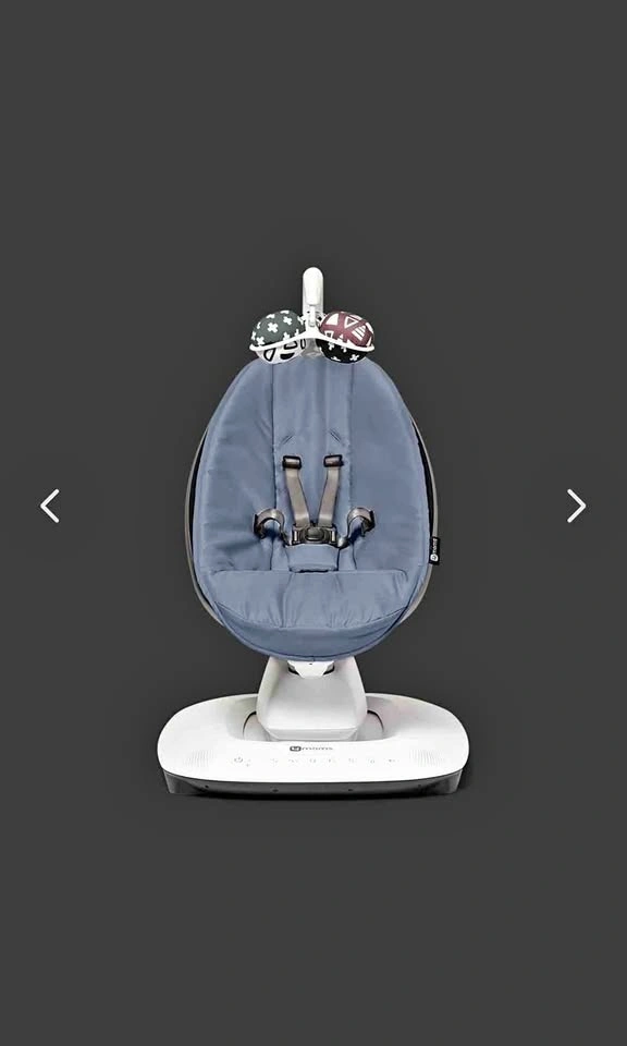4moms Mamaroo in almost new condition, bought from West Coast kids less than 6 months ago. Color slate blue. Only used a handful of times as baby did not like being in it. There's a few milk stains/marks we couldn't remove (see photos). Liner was just washed before packing and is ready to go. Will also come with the reversible 4moms brand infant insert (like new, worth $60).