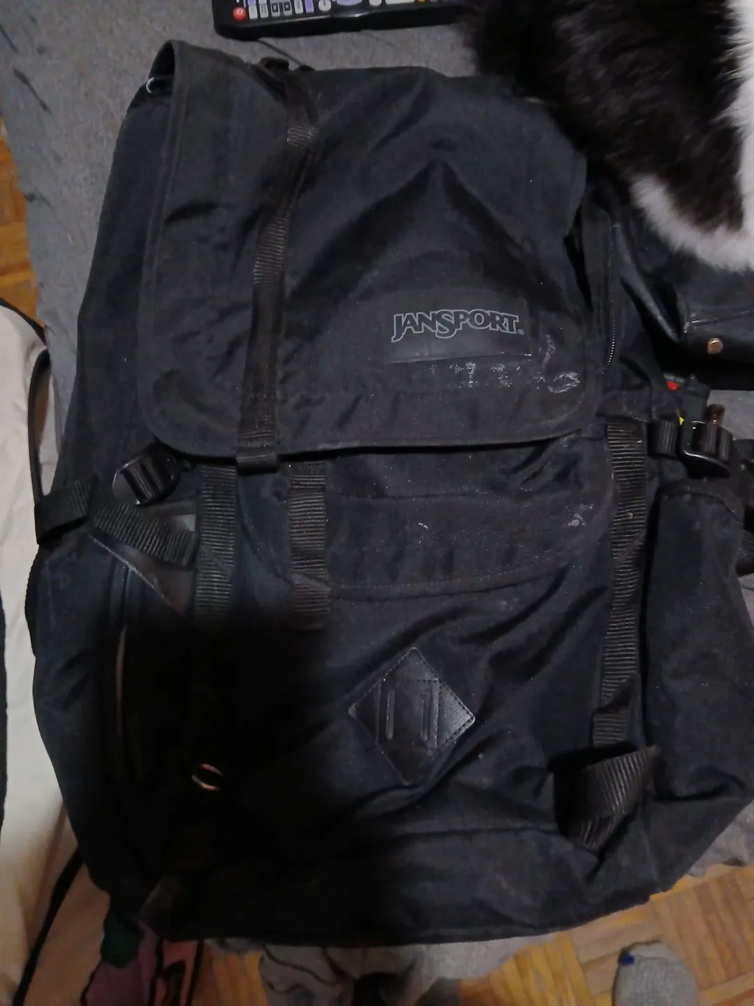 Selling a JanSport backpack in black. It's a reliable and sturdy backpack, perfect for school, work, or travel. There are some signs of use, as shown in the pictures, but it's still got plenty of life left!