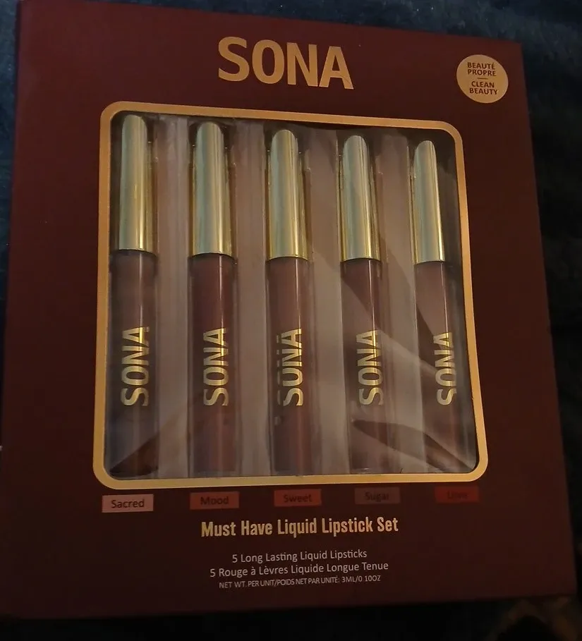 Selling a brand new SONA Must Have Liquid Lipstick Set! This set includes 5 long-lasting liquid lipsticks in beautiful shades. Each lipstick contains 3ml/0.10oz of product. Perfect for creating a variety of looks!
