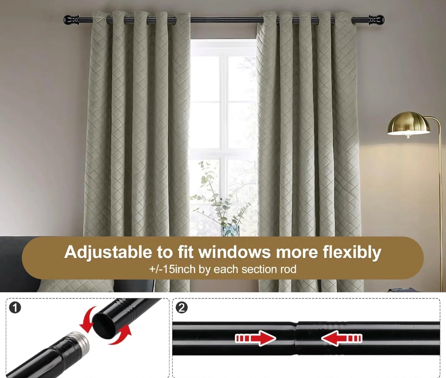 Black Extendable Curtain Rod 28"-65"