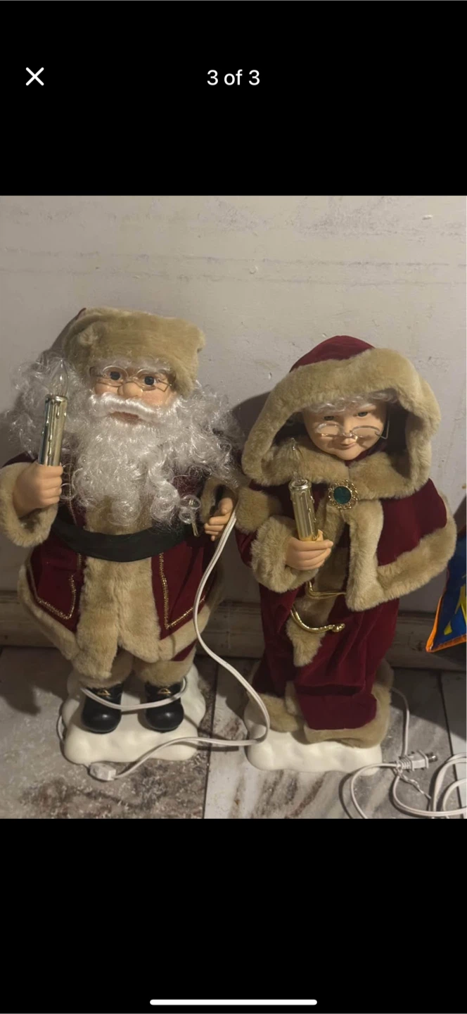 Selling a set of animated Mr. and Mrs. Claus figures lamps. They are in great condition and would make a lovely addition to your room
