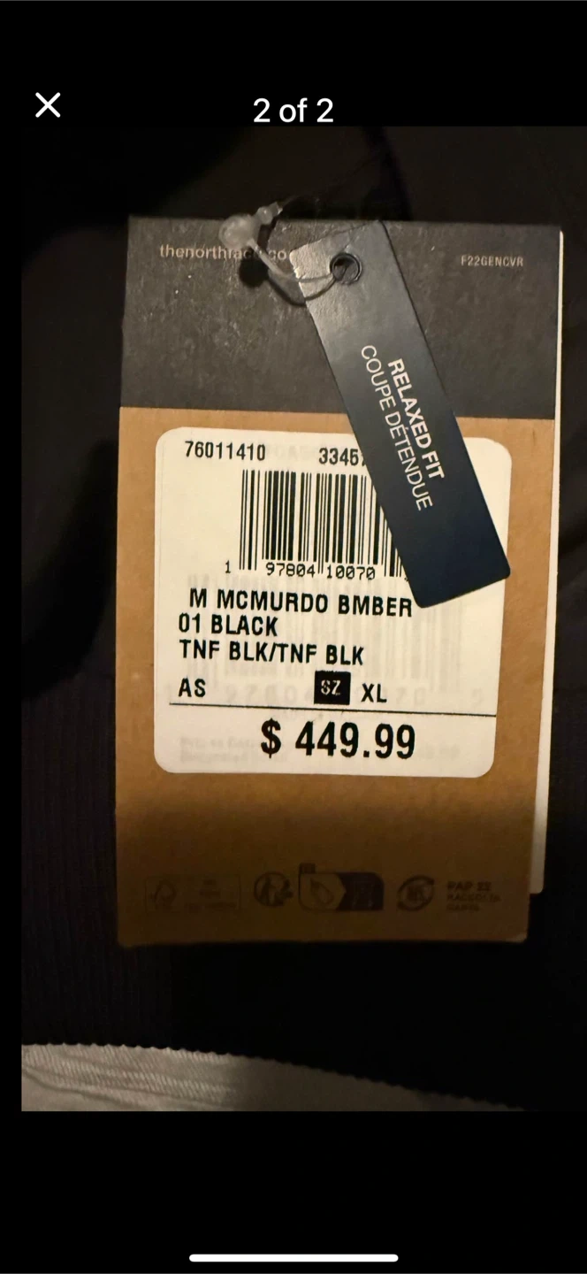 Selling a The North Face McMurdo Bomber in size XL. The jacket is black. Originally bought for $449.99. It has a relaxed fit