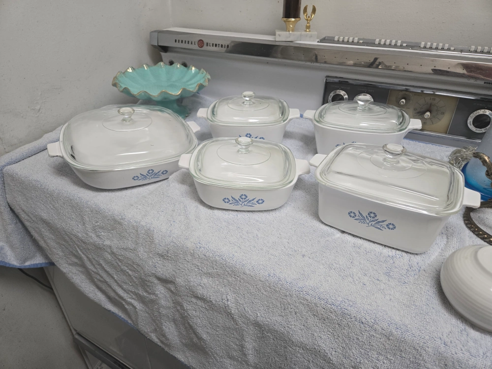 Selling a set of CorningWare casserole dishes with the classic Cornflower pattern. These are in great condition and ready for a new kitchen!
