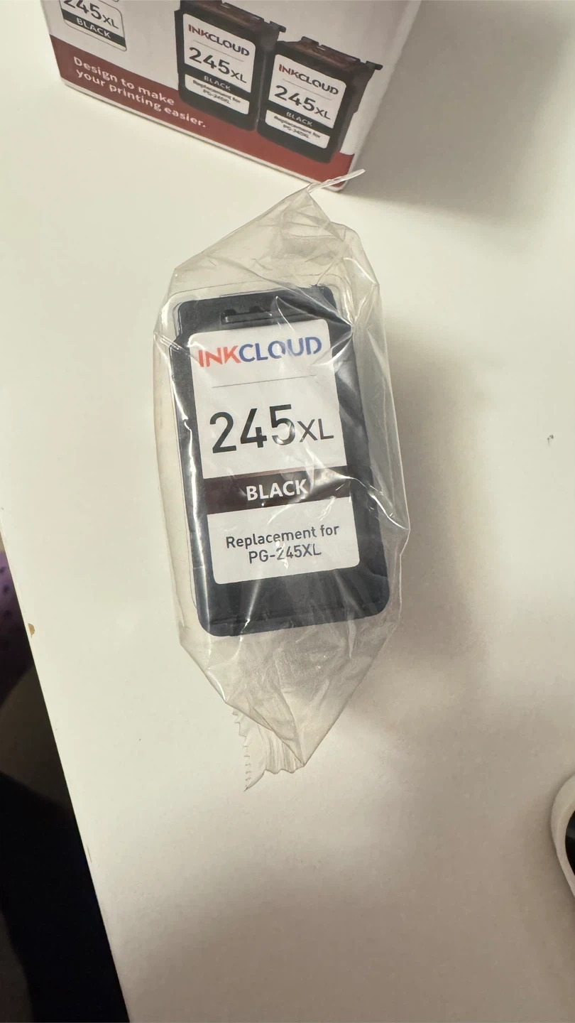 Selling a brand new InkCloud 245XL black ink cartridge. It's a replacement for PG-245XL, and is still sealed in its packaging, so it's ready to go for your printer