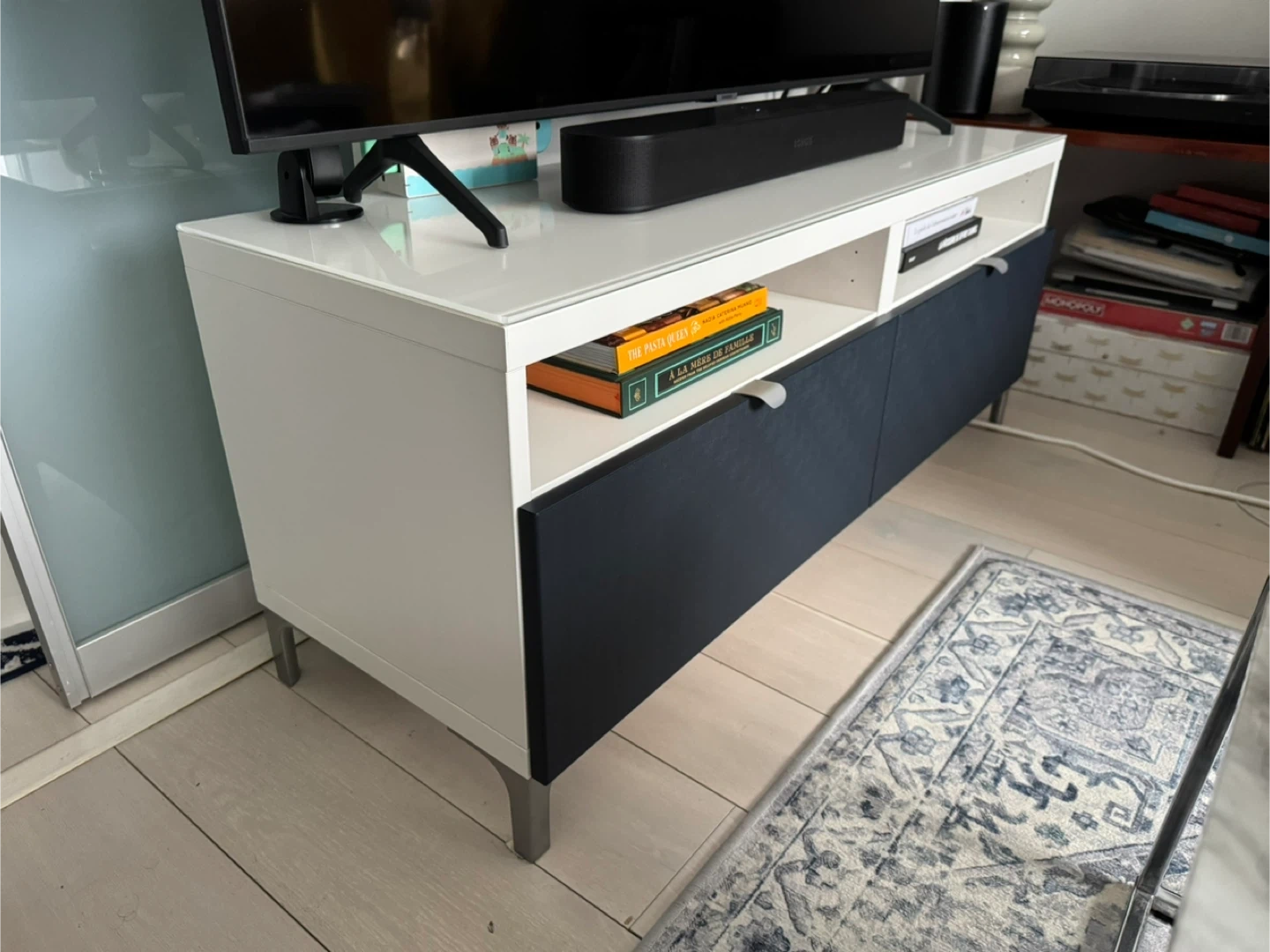 Buy & SellIKEA Besta TV Stand - White/NavyIKEA Besta TV Stand - White/Navy$80Tv stand with 2 drawers - white with blue textured drawers and glass top. Great condition! Pick up only near Eaton center.WHERE TO MEETM5B 0B4View MapSELLERverifiedSimonChurch and Wellesley1337 reviews2 chats·0 favorites·56 viewsSEND CHAT TO SELLERHi Simon! I’m interested in your listing.Hi Simon! I’m interested in your listing.Get the Karrot app to chatSign In to chat