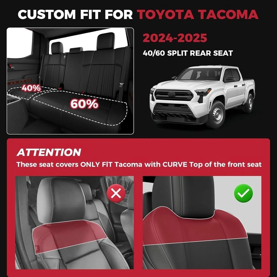 These leather seat covers are custom - made for Tacoma owners. Crafted to ensure a seamless and comfortable fit with your seats. To ensure the best fit, we recommend double - checking your seat shape before purchase to select the right size, guaranteeing an ideal fit for your specific vehicle.