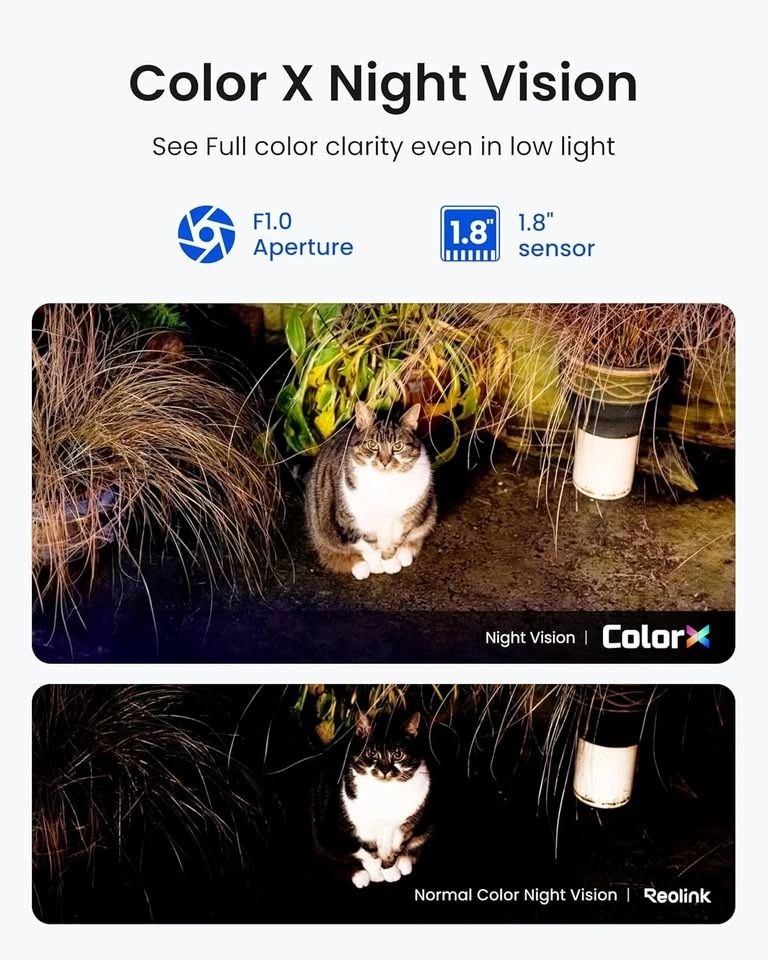 ColorX enables full-color night vision with F/1.0 aperture and 1/1.8 sensor for true-to-life details. The built-in IR-Cut helps you see every important detail even at night. Keep your home safe day and night.