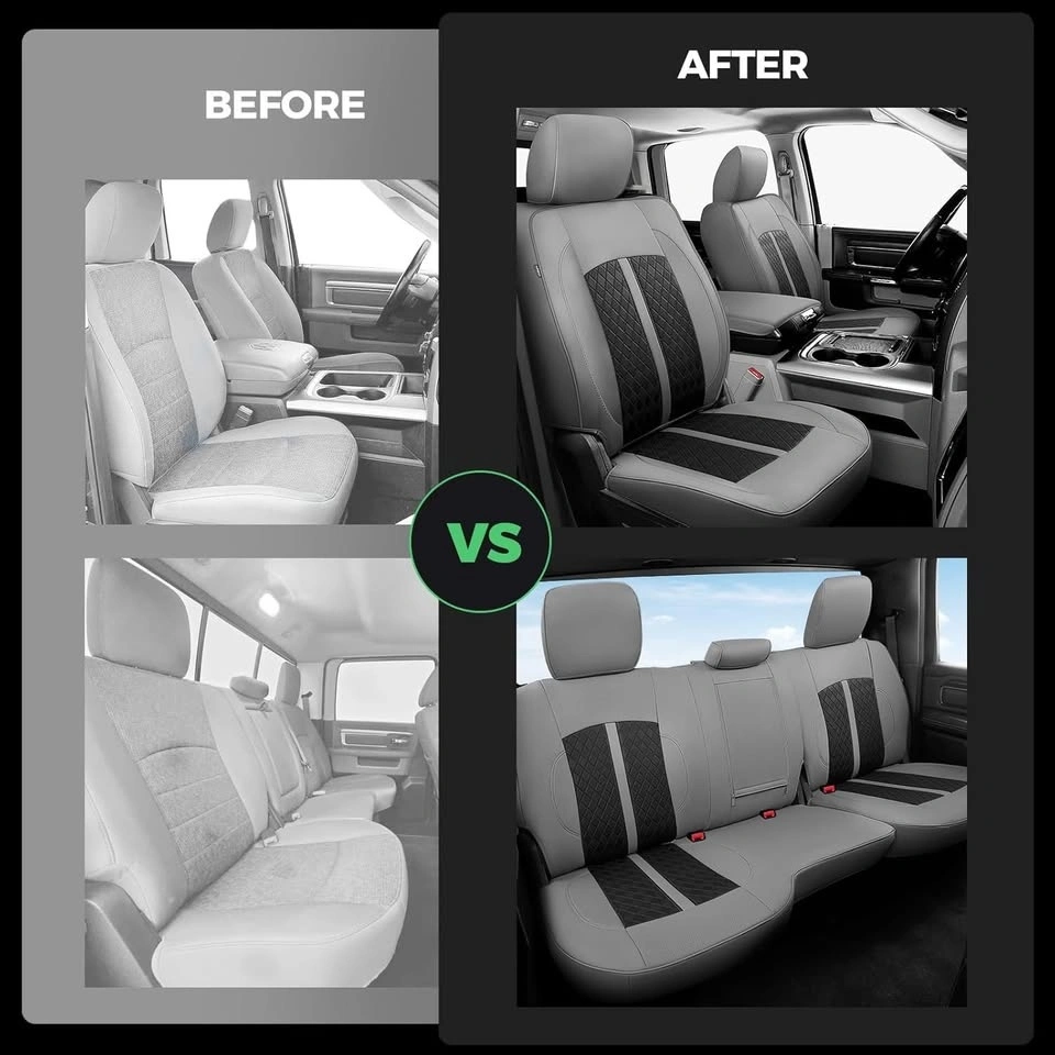 Specifically tailored to fit snugly all details of car seat covers for Dodge Ram 4 Door, and ensure the full function, not affecting at all the use of airbag, armrests, safety belt, child safety Seats and seat adjustments. full wrap car seat covers front seats come with seat back organizer for improved user convenience.