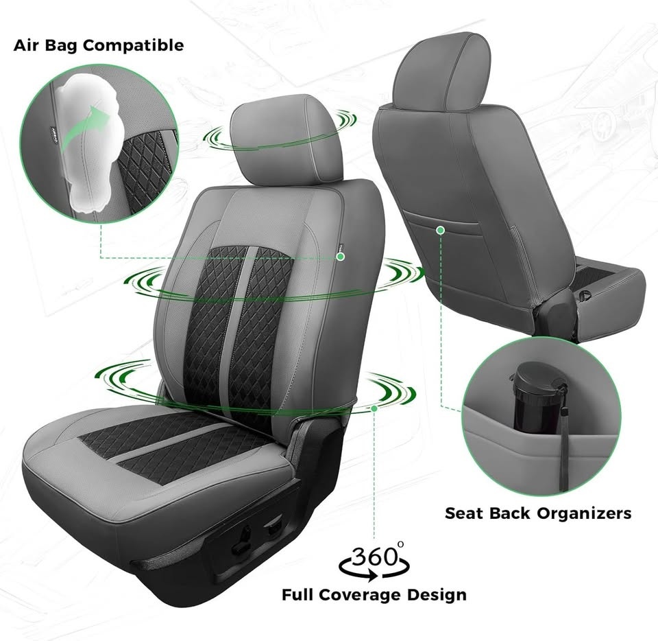 Specifically tailored to fit snugly all details of car seat covers for Dodge Ram 4 Door, and ensure the full function, not affecting at all the use of airbag, armrests, safety belt, child safety Seats and seat adjustments. full wrap car seat covers front seats come with seat back organizer for improved user convenience.