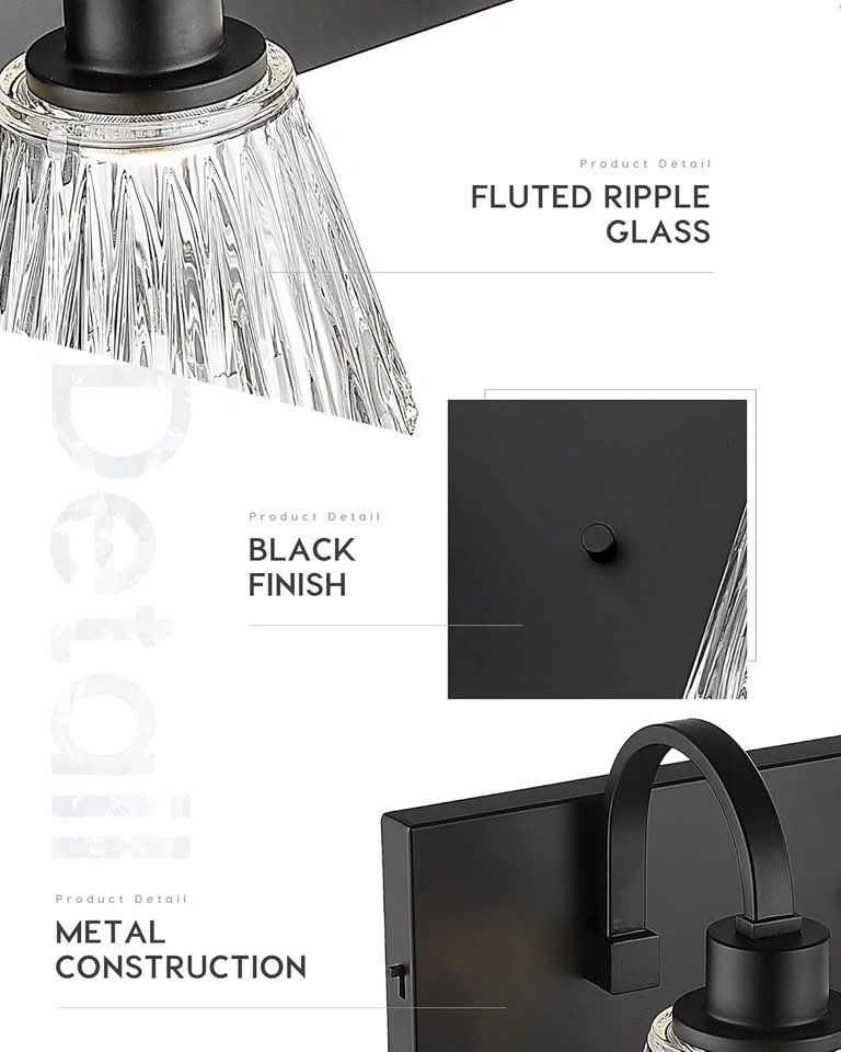 This 23 Inch vanity light features sturdy metal construction in black finish with fluted ripple glass. It gives off more attractive and bright light than ordinary glass.