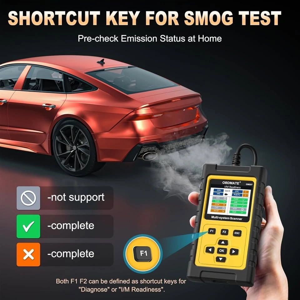 OM507 OBD2 scanner supports all essential OBD2 functions you need. Read & clear codes, turn off engine light or MIL, view freeze frame, read I/M readiness, retrieve vehicle VIN, live data stream (with graphing display), O2 sensor test, on board monitoring mode, and perform EVAP test.
