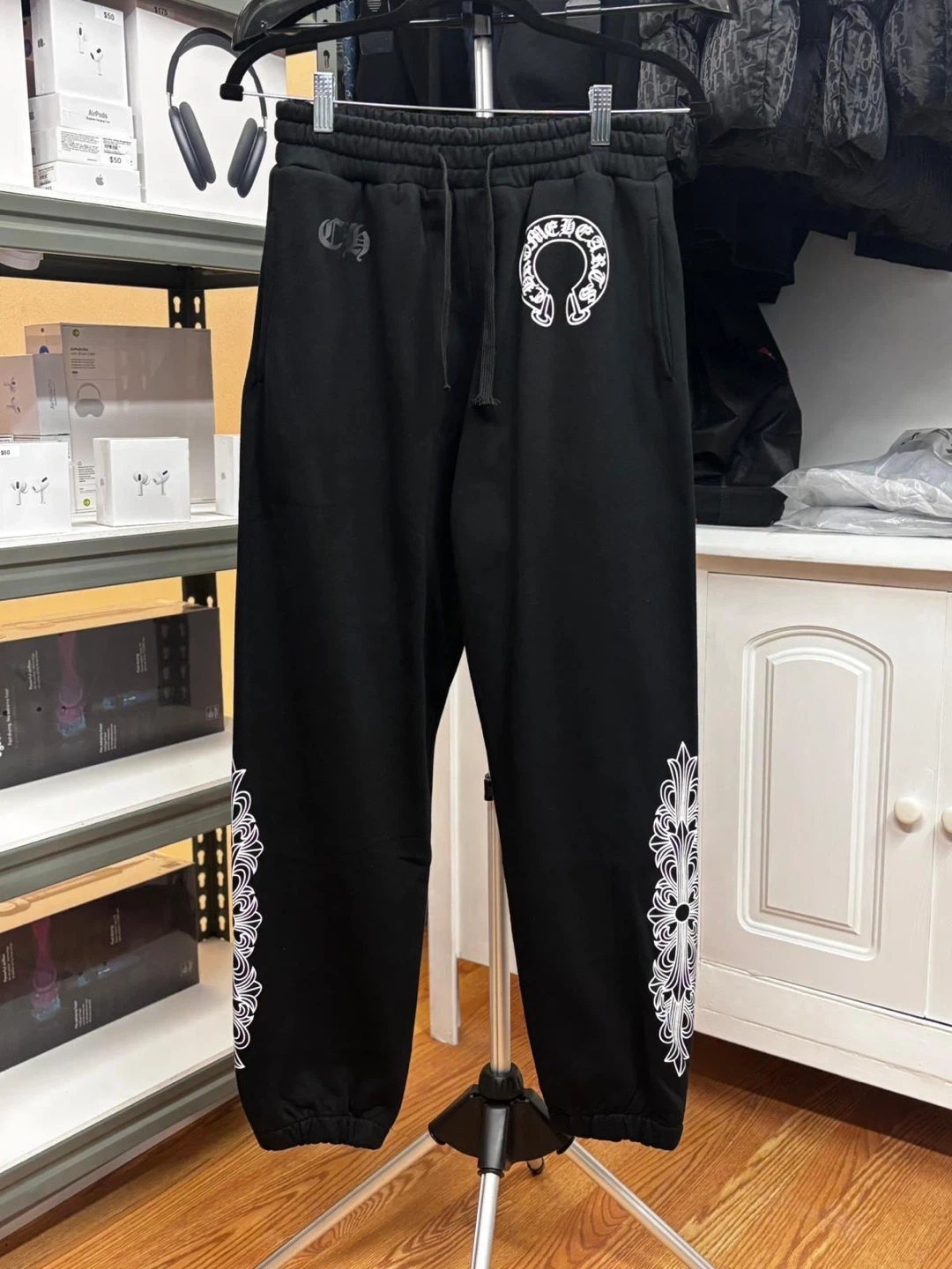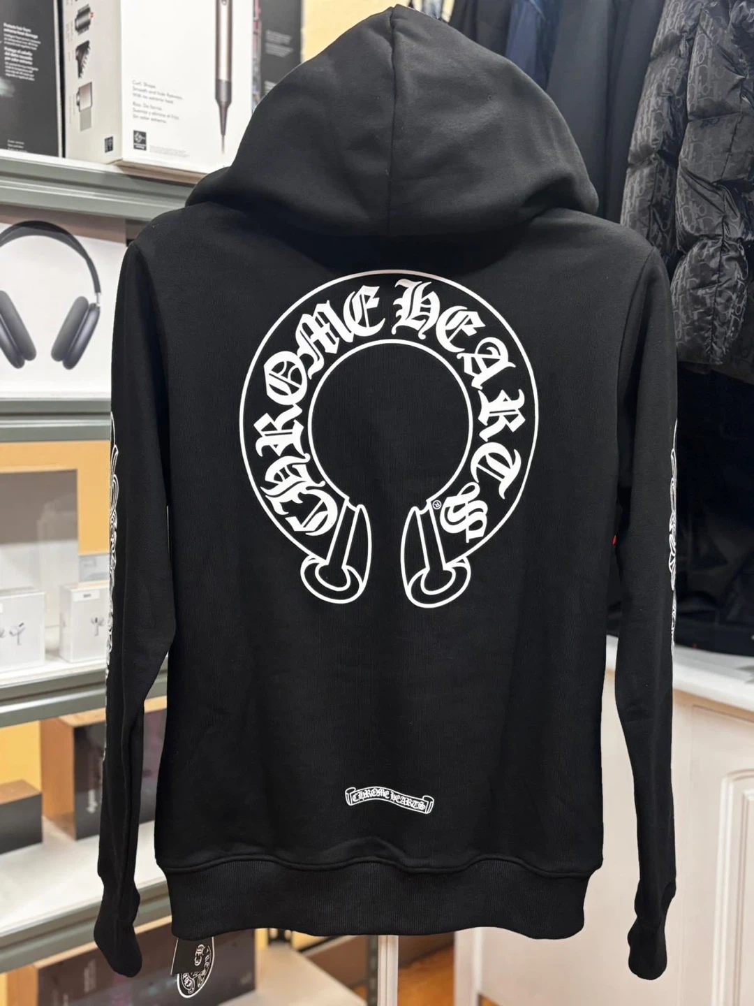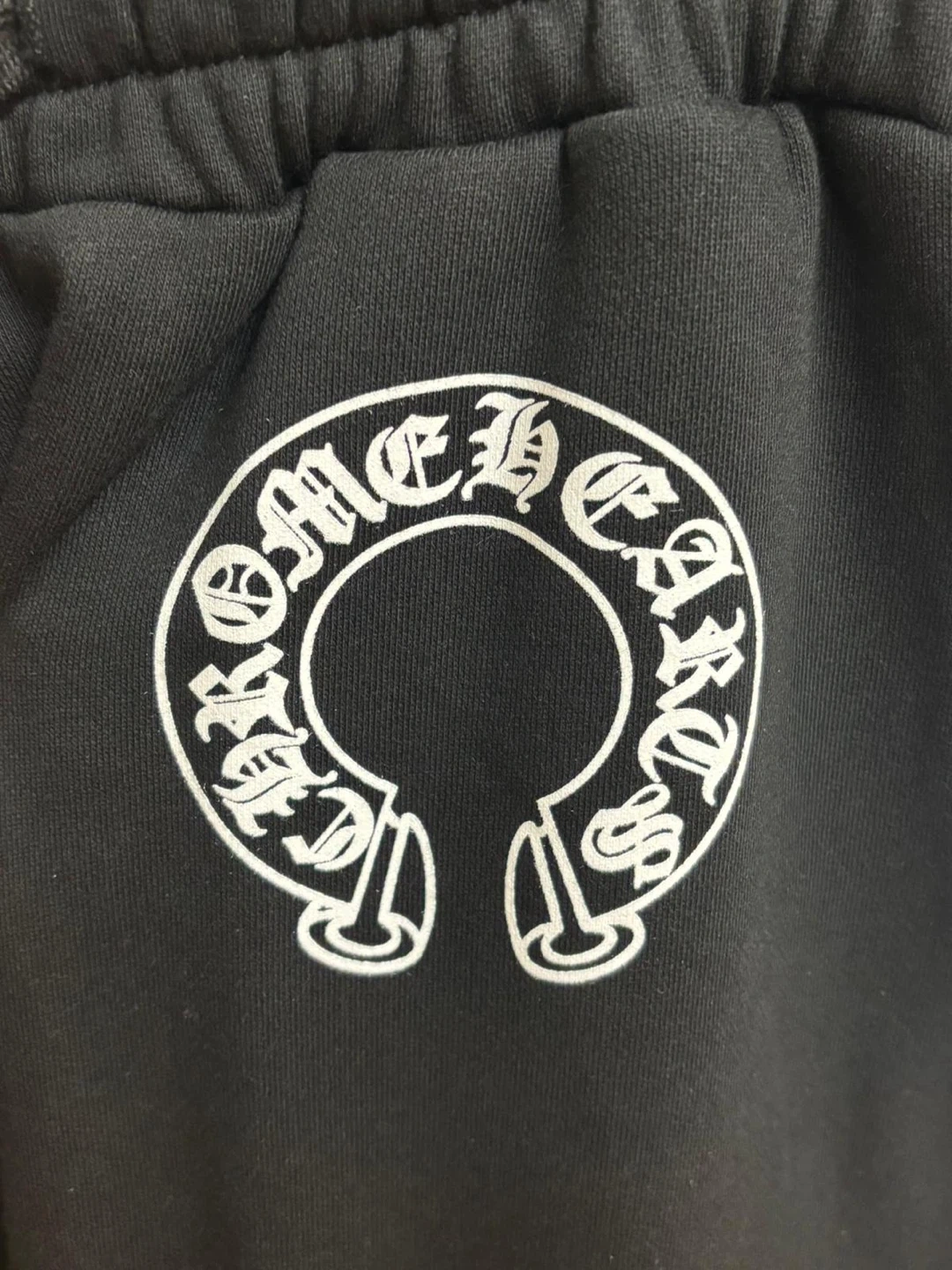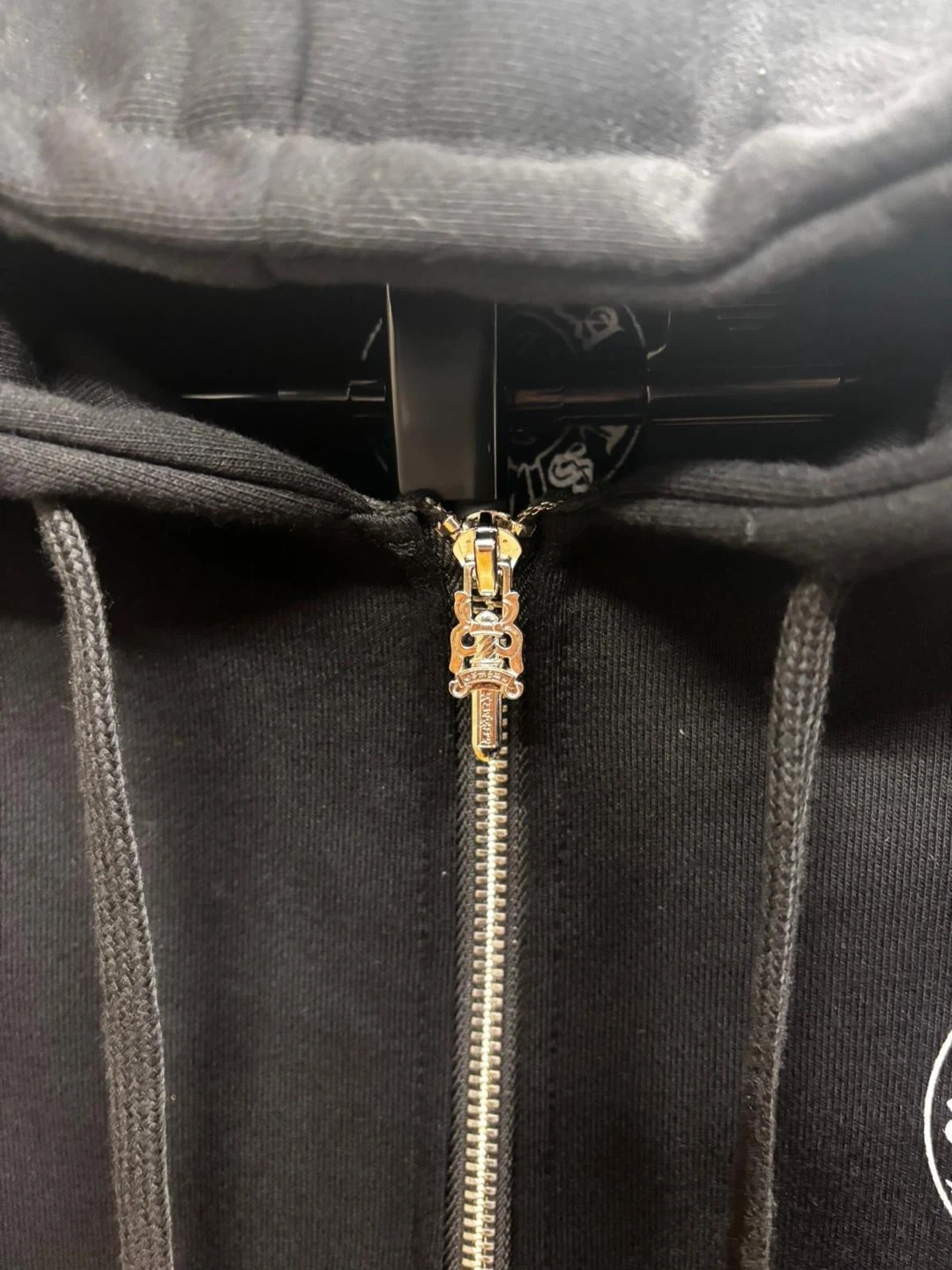 Brand new Chrome Hearts zip-up hoodie and sweatpants set. Heavyweight premium cotton with signature horseshoe logos and floral cross detailing on sleeves and pant legs. Full zip hoodie with quality hardware and a clean, structured fit.