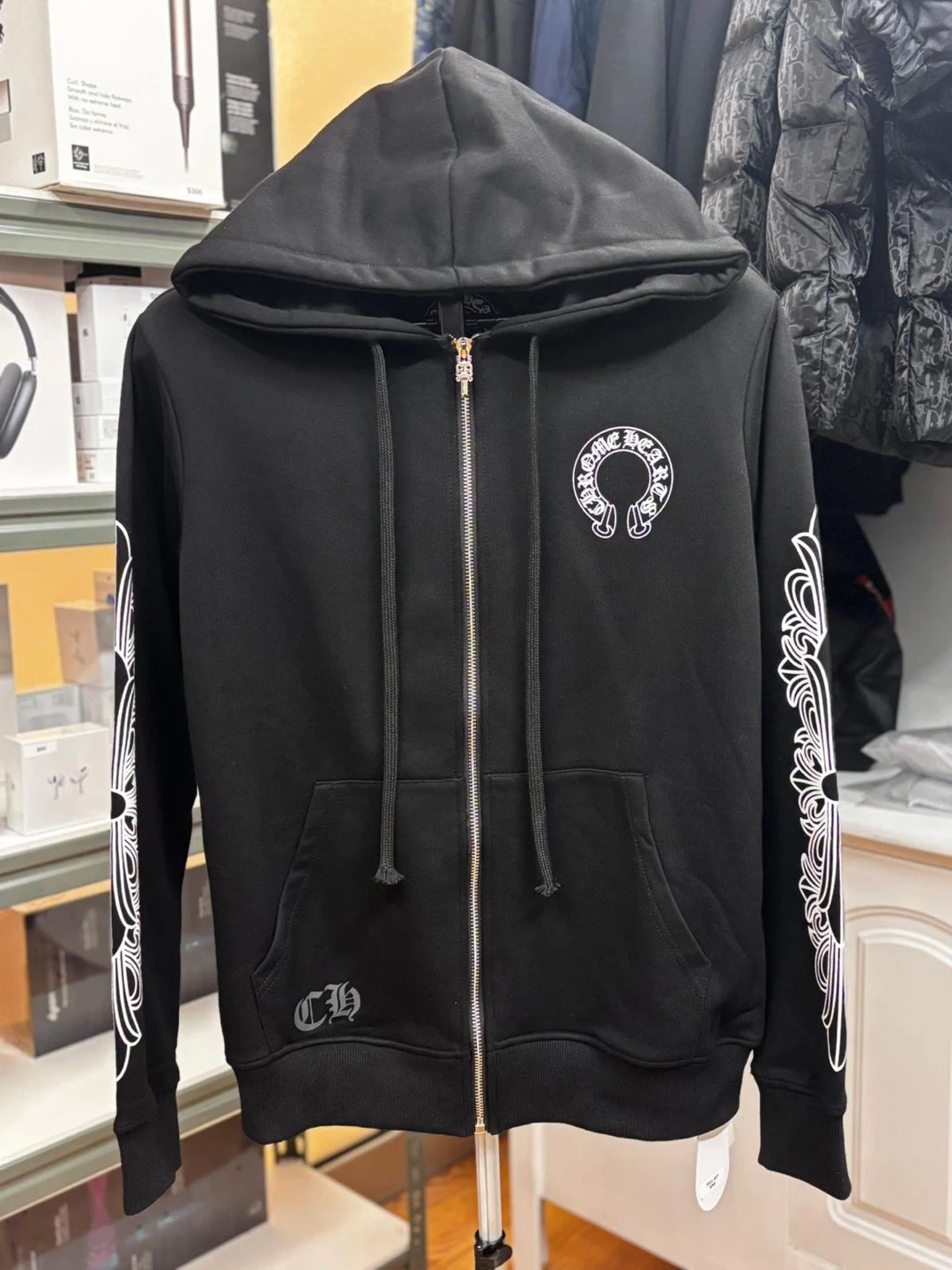 Chrome Hearts Horseshoe Floral Cross Sleeve Zip Up Hoodie SET