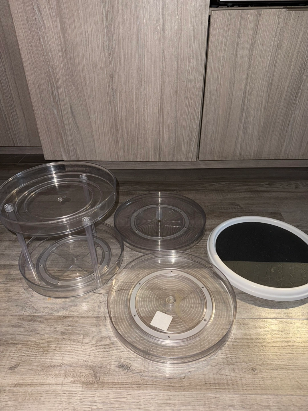 Selling a bundle of Lazy Susan turntable organizers! They are clear and in great condition. Perfect for organizing your kitchen or pantry! All 4 for $5, pick up by the Eaton Center!