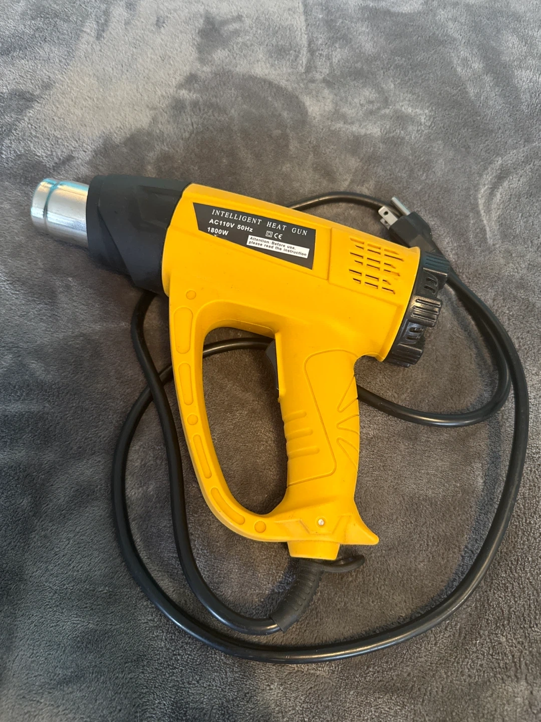 Selling an intelligent heat gun in good condition. It's yellow and black, and has adjustable temperature settings.