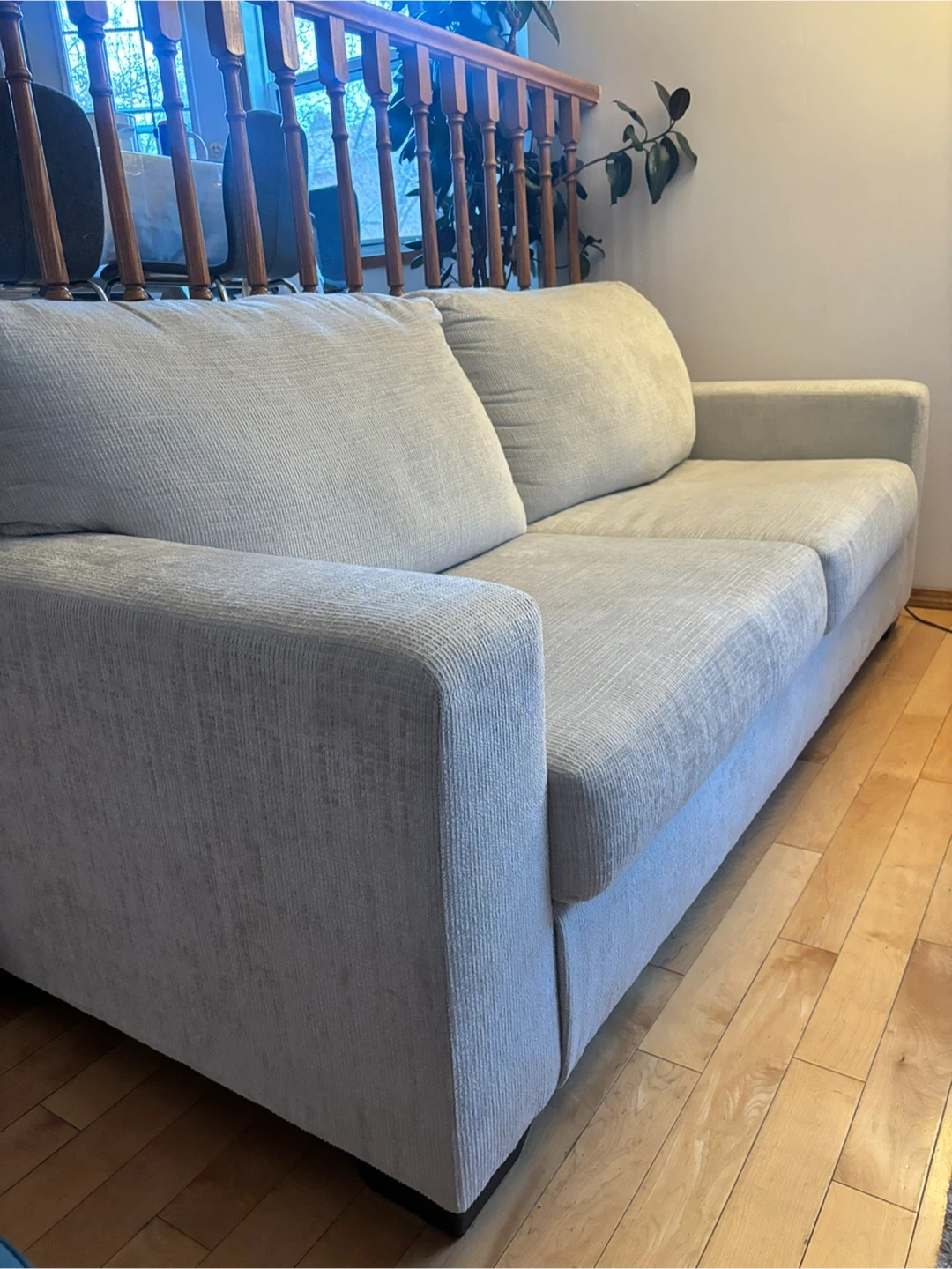 Selling a comfy beige sofa that's in great shape! It comes with two decorative throw pillows. This sofa would be a great addition to any living room or den. It's a neutral colour, so it will match any decor! The cushions are soft and supportive, perfect for lounging after a long day
