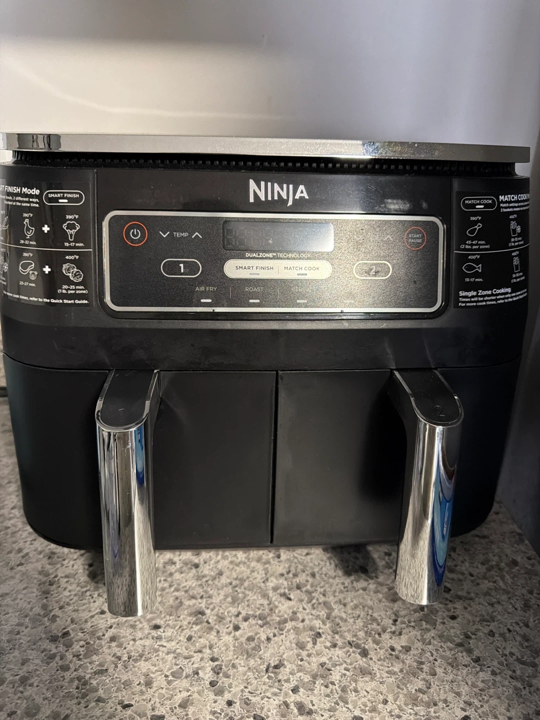 Selling a Ninja Dual Zone air fryer. It's in good working condition and perfect for cooking up quick meals! It has two separate cooking zones so you can cook two different things at once