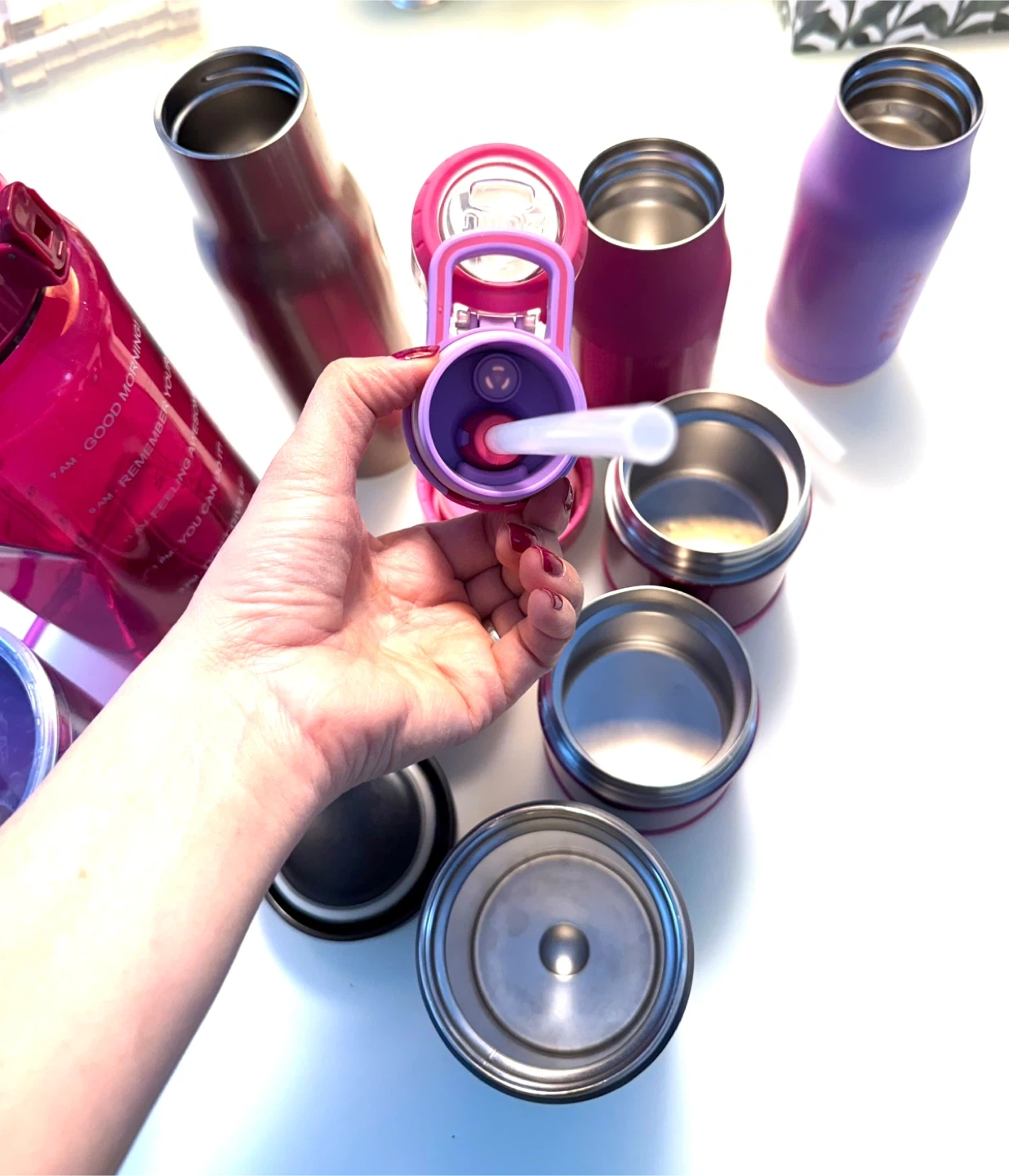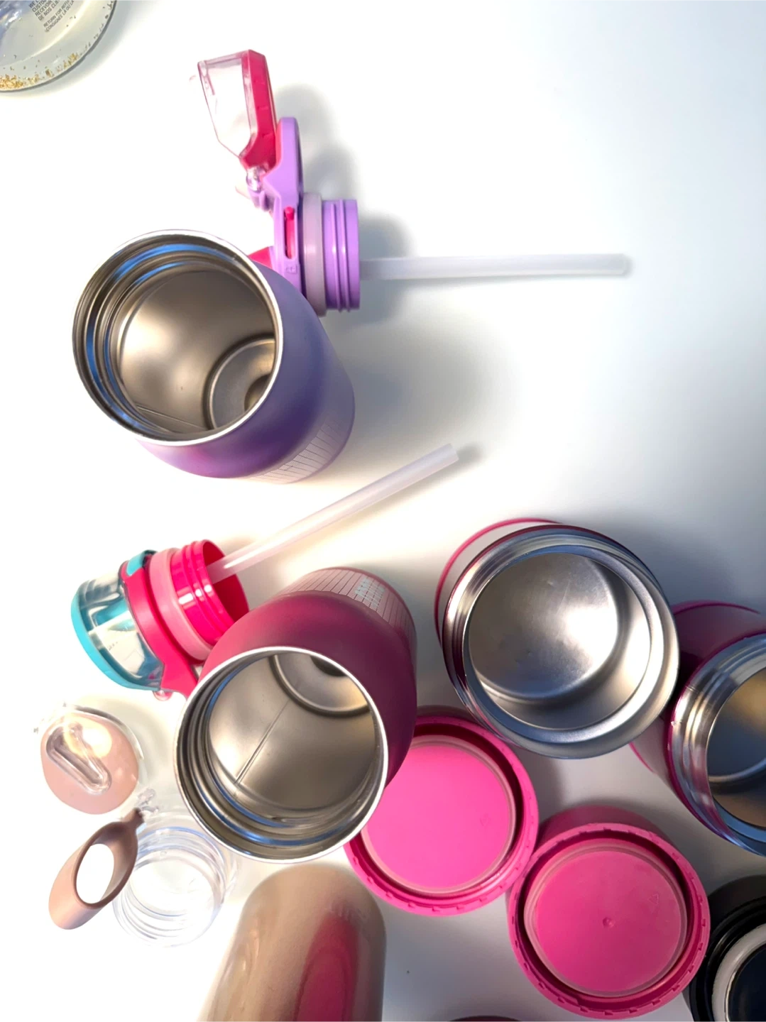 Selling a collection of kids' water bottles and food containers. There are various brands including Zulu, Built, and Thermos. Great for school lunches or outings!