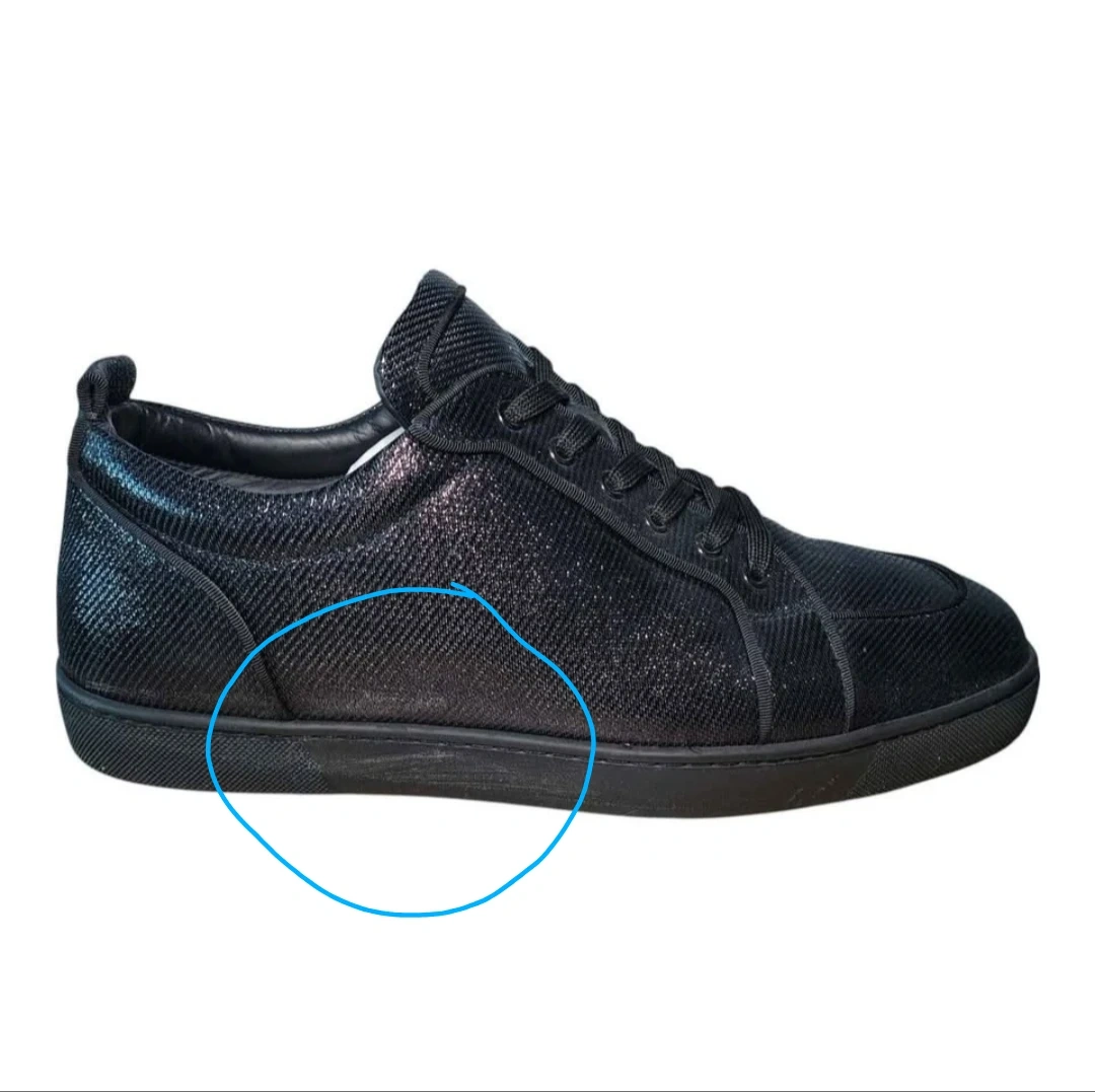 Great black textured Christian Louboutin sneakers. Only worn once minimal scuff on one shoe(see last photo). Comes with original box. Black laces and soles are in great condition. Size 12.5 US 46.5 EUR.