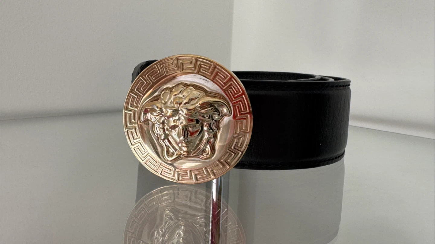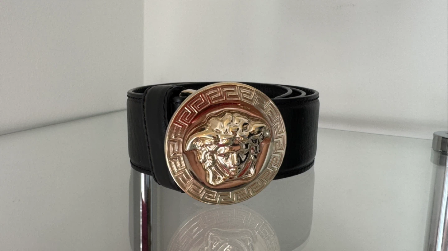 Versace Leather Medusa Belt Black Gold-Tone Buckle Women.