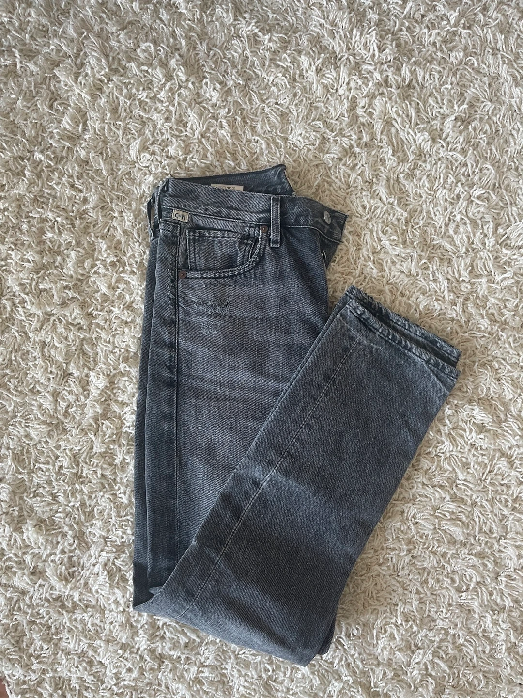 Selling a pair of Citizens of Humanity jeans in great condition! These are the Charlotte high-rise straight style in a dark grey wash. A classic and versatile addition to any wardrobe!