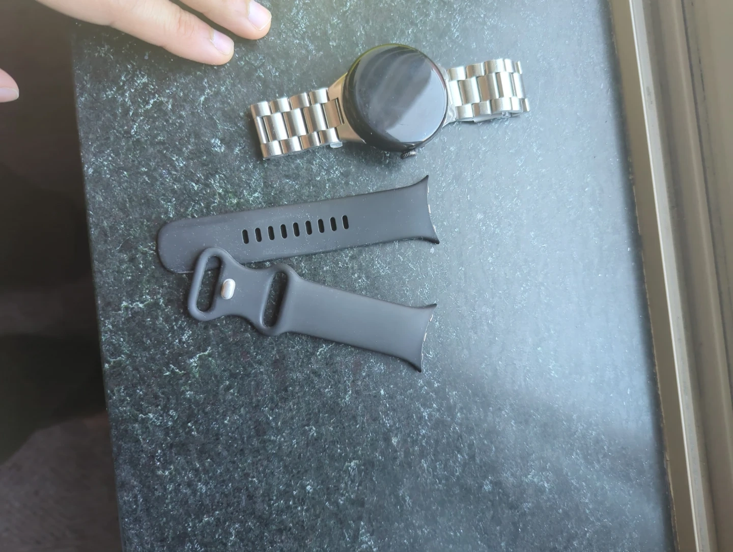 Included are the watch, the original band, and an additional metal band for a different look. I'm also throwing in a pixel charging dock that charges the buds, watch and phone simeltaneously.