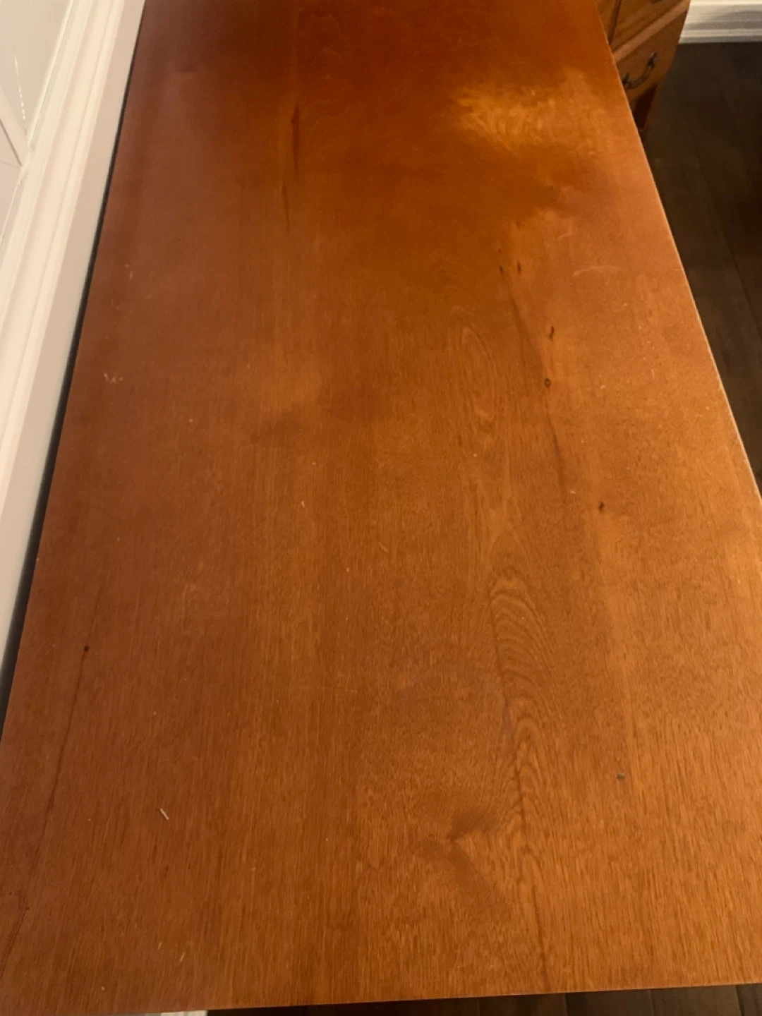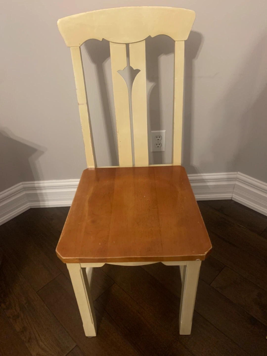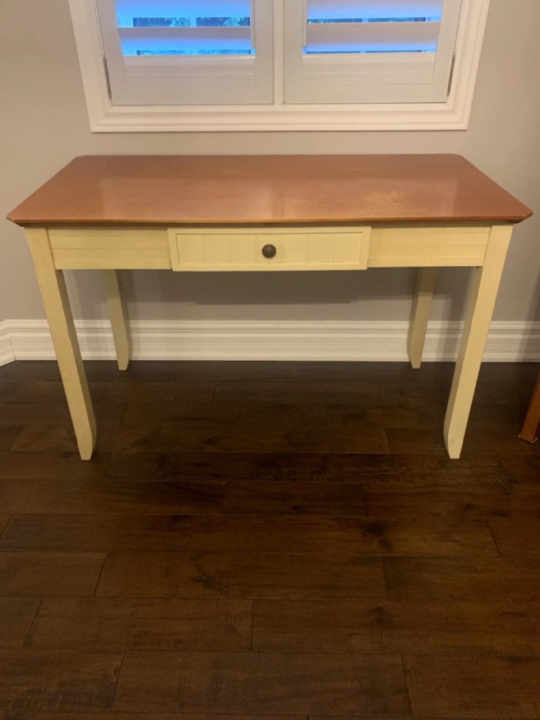 Selling a cute wooden desk and chair set! The desk has a drawer for storage. The chair matches nicely with the desk. Perfect for a small space!