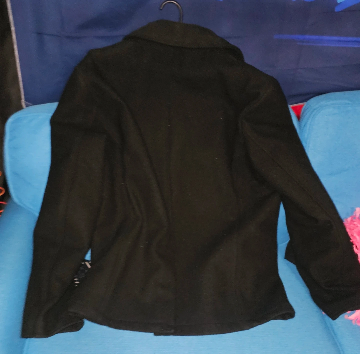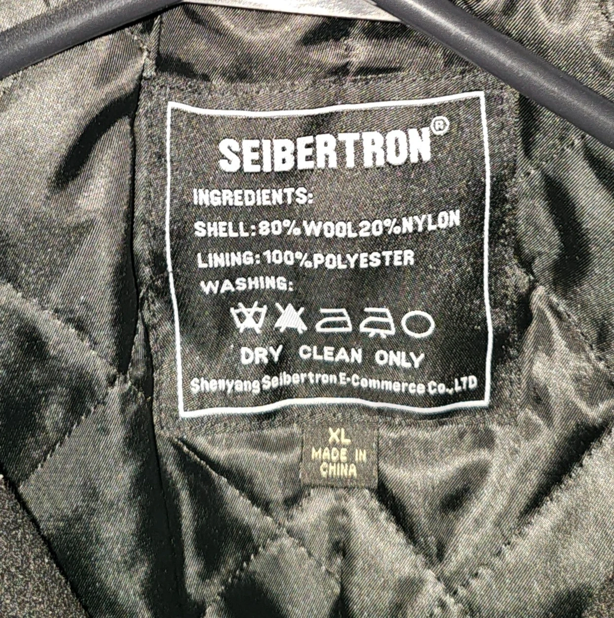 Selling a Seibertron pea coat in size XL! It's a classic black colour and made with a blend of 80% wool and 20% nylon for the shell, with a 100% polyester lining. Dry clean only to keep it looking its best