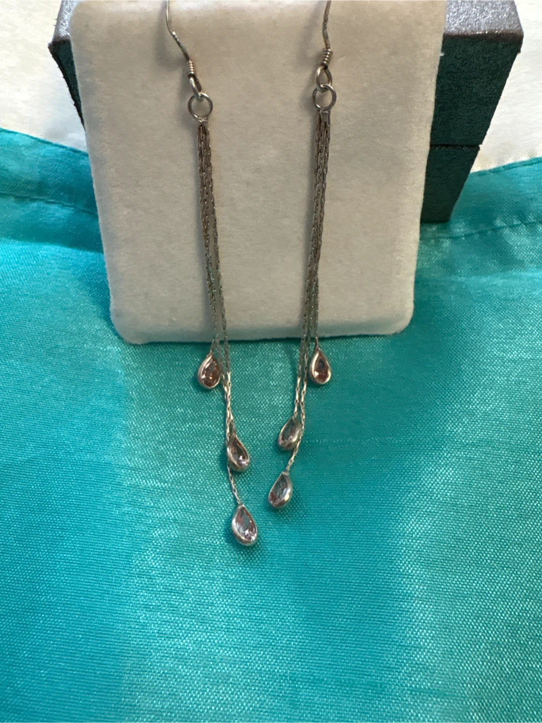 These are a pair of lovely dangling earrings. They are silver in colour and feature a teardrop design. They are in great condition! No box π