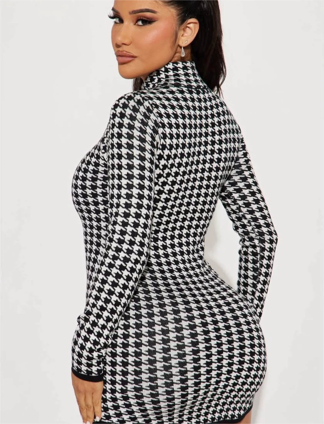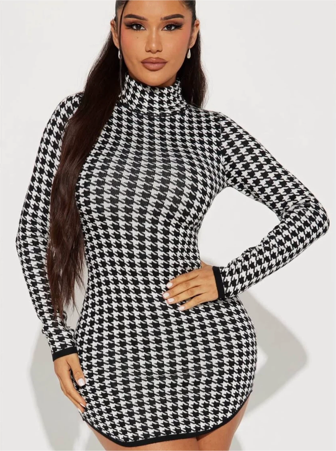 New Fashion Nova Houndstooth Long Sleeve Mini Dress