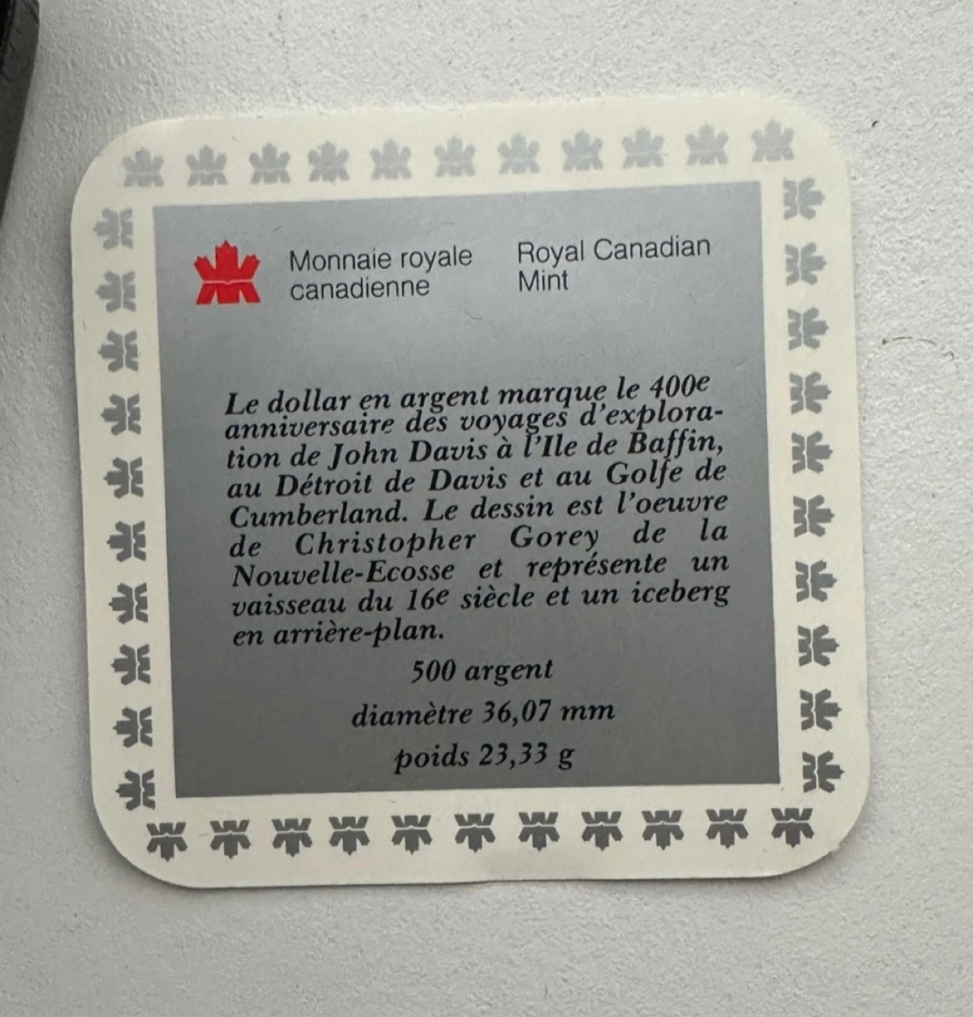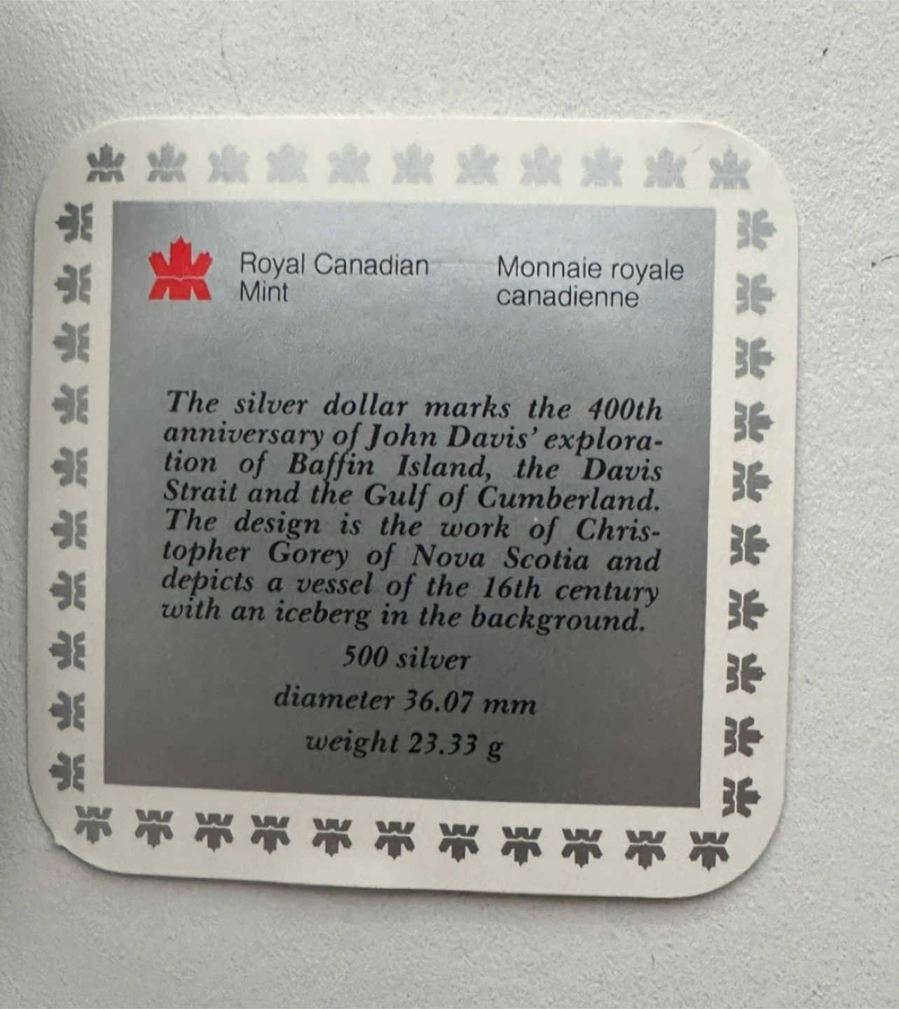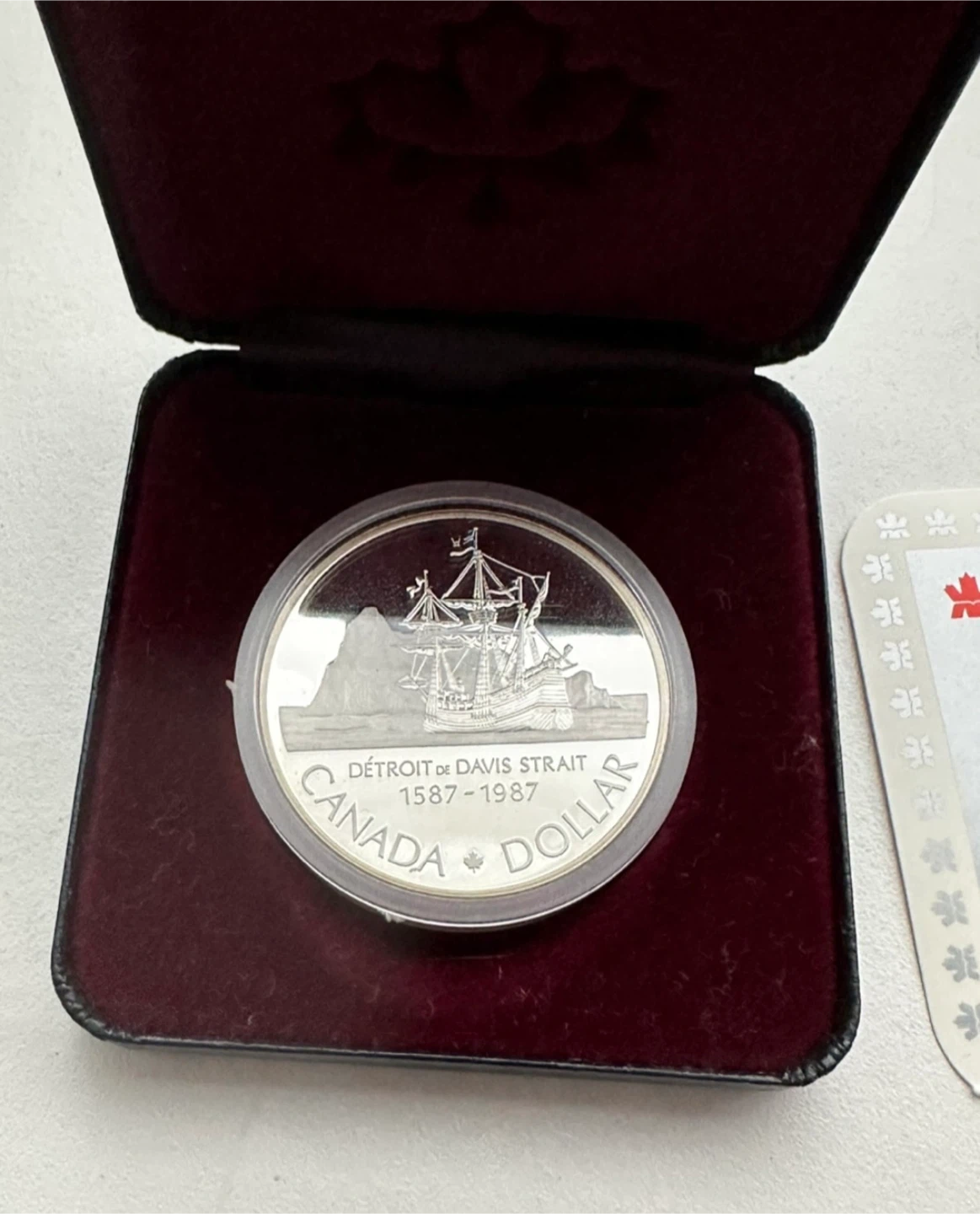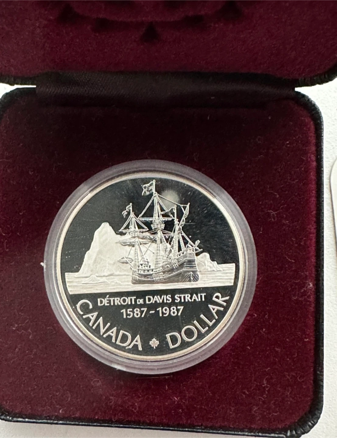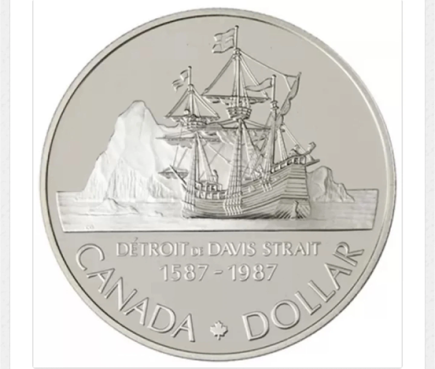 This silver dollar marks the 400th anniversary of John Davis' historic exploration of Baffin Island, the Davis Strait and the Gulf of Cumberland.