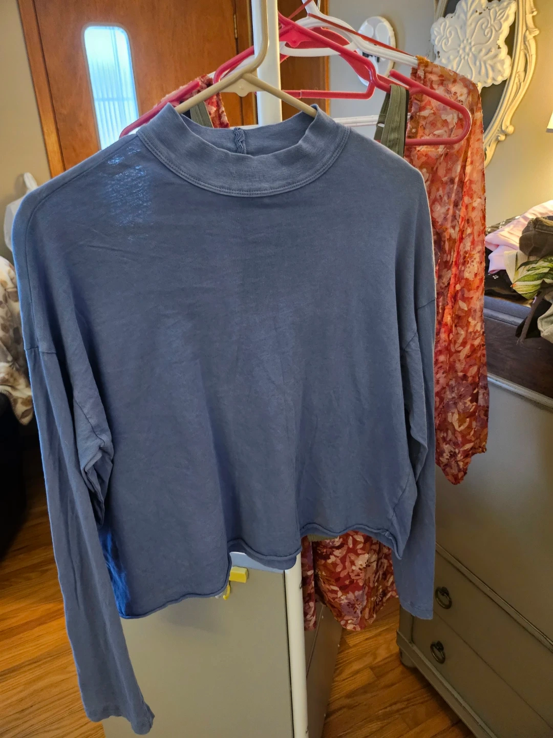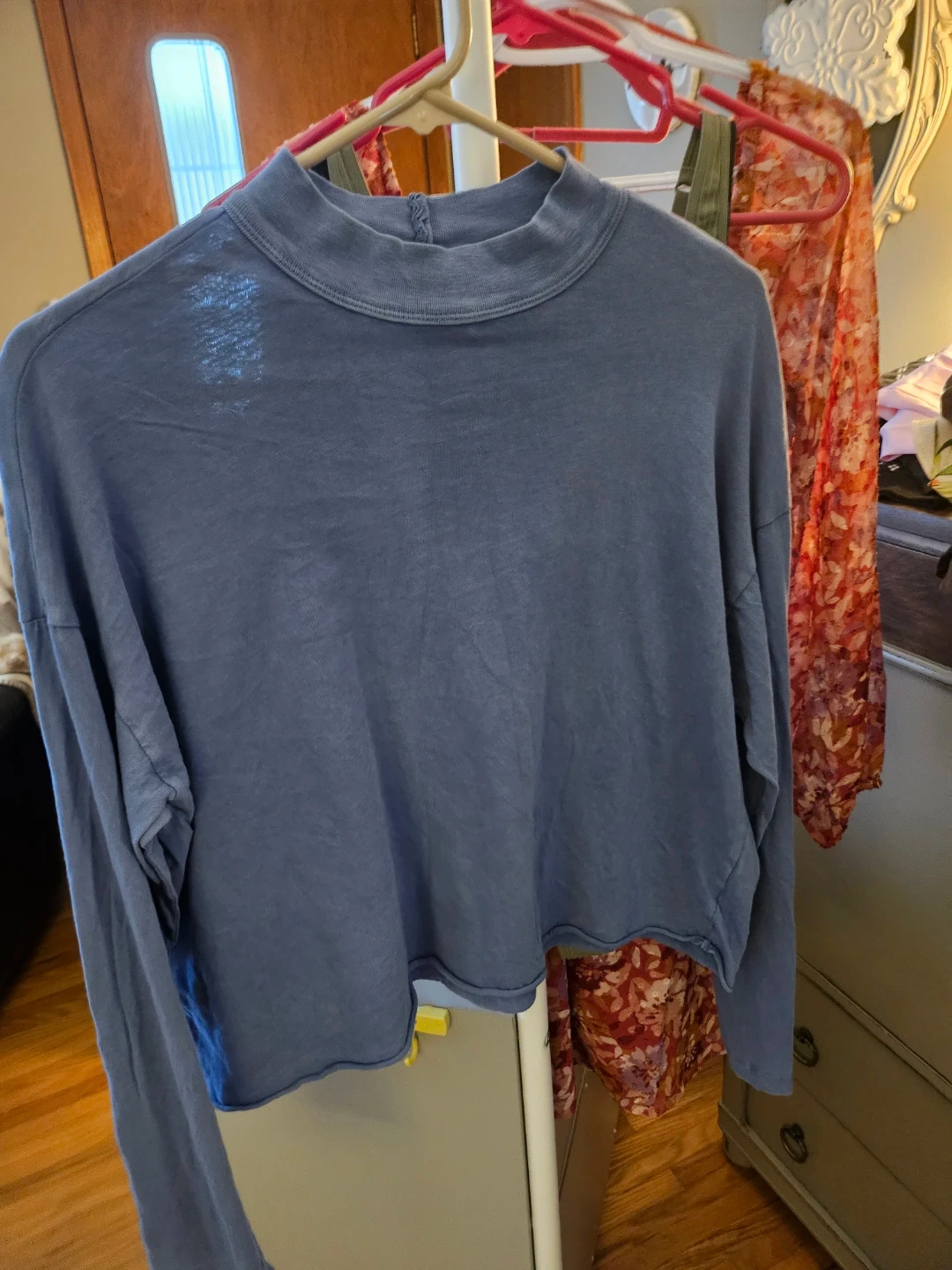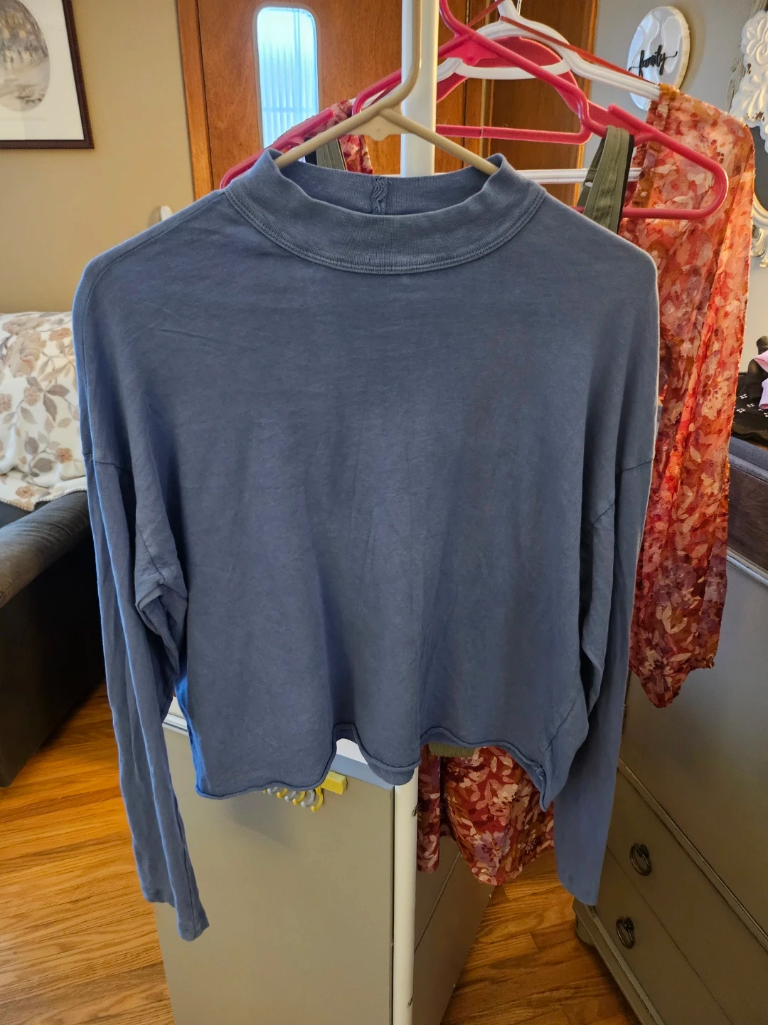 Aerie Blue Cropped Mock Neck Long Sleeve Top - Size M 🧡