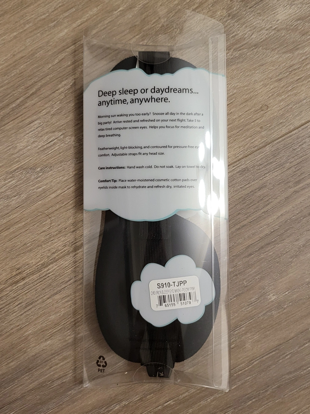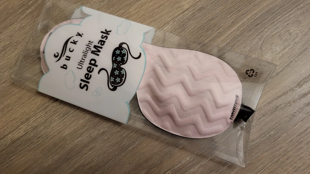 Bucky Ultralight Sleep Mask, brand new in packaging. Light pink with chevron textured front.