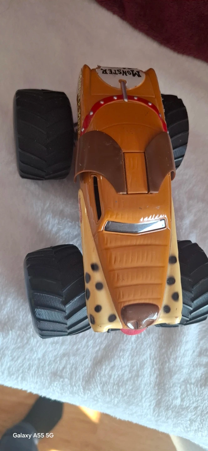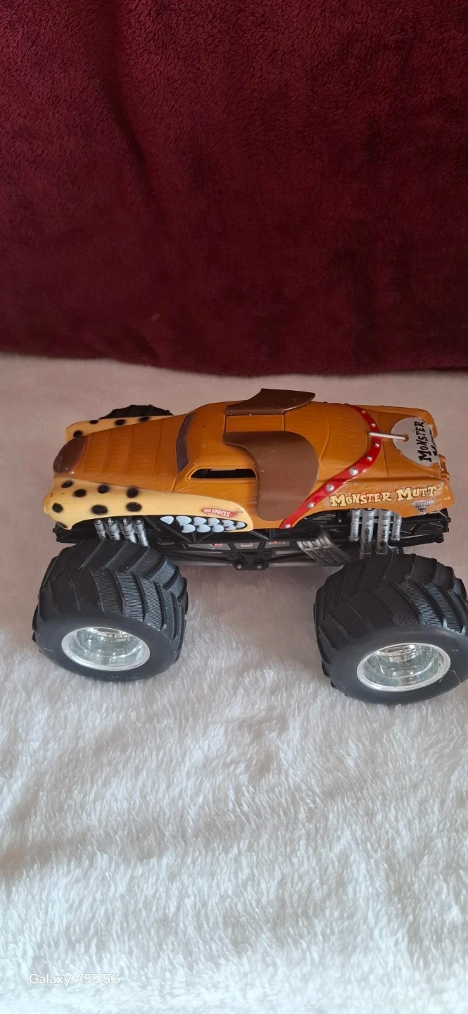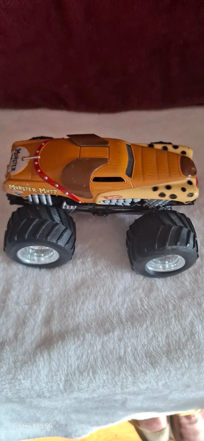 Here's a Monster Mutt Monster Jam truck 1/24 made by Mattel! It's in great condition and ready for a new home. The truck features a unique dog-like design with the words "Monster Mutt" on the side. It was made in 2004 by Mattel.