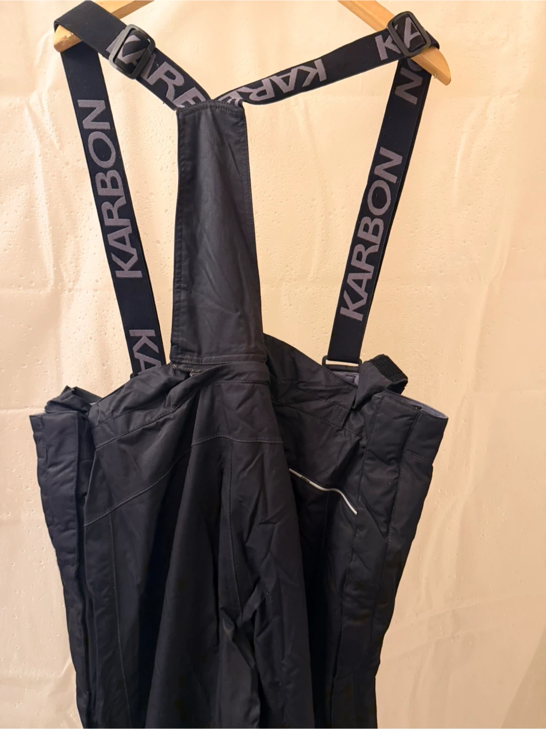 Selling a pair of XL black Karbon snow pants with suspenders. They look to be in great condition and ready for the slopes! The suspenders have the Karbon logo on them.