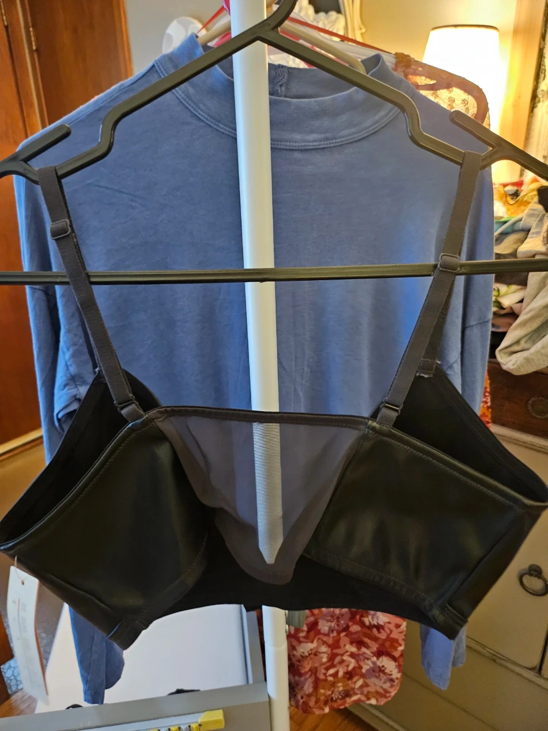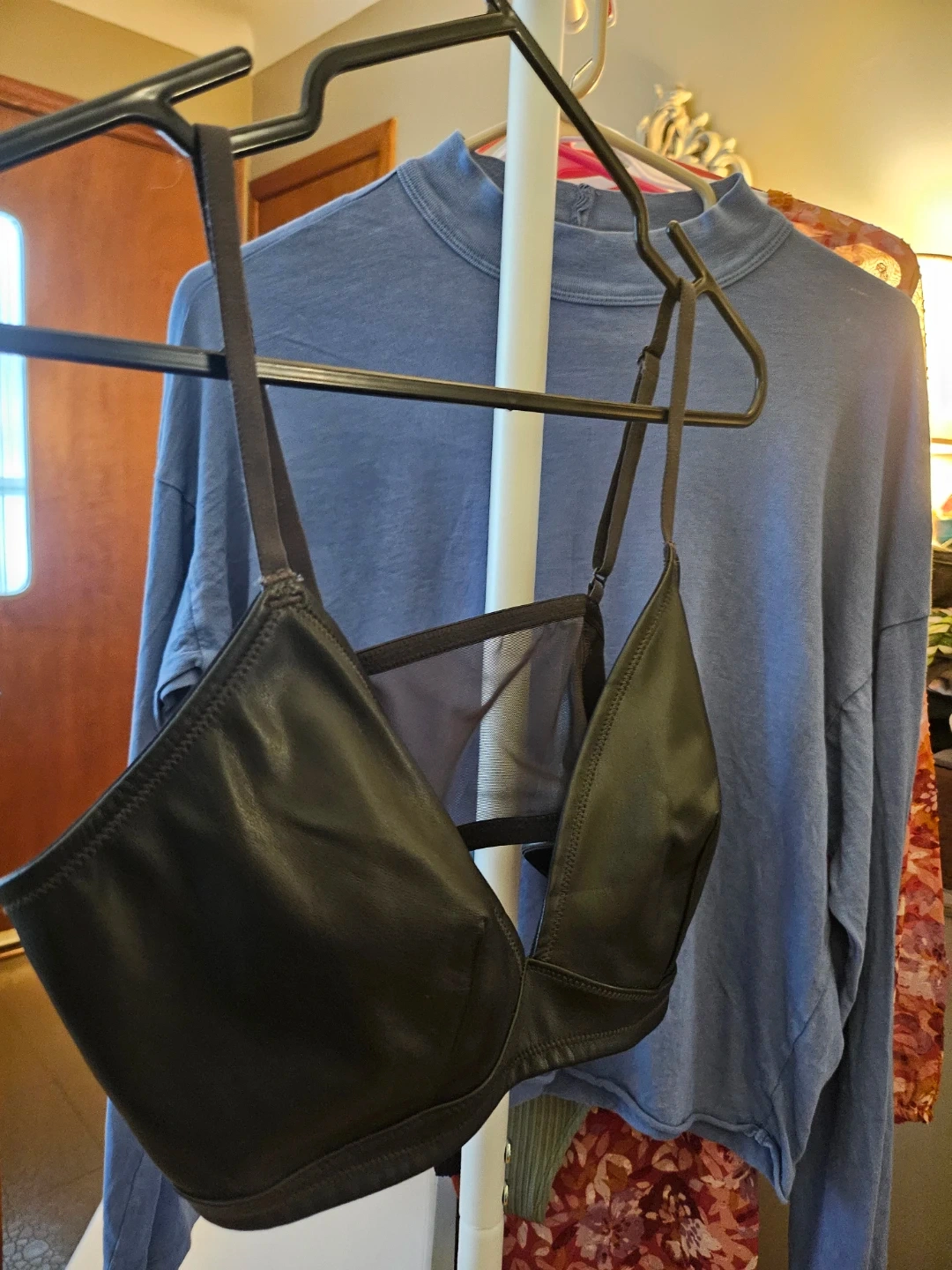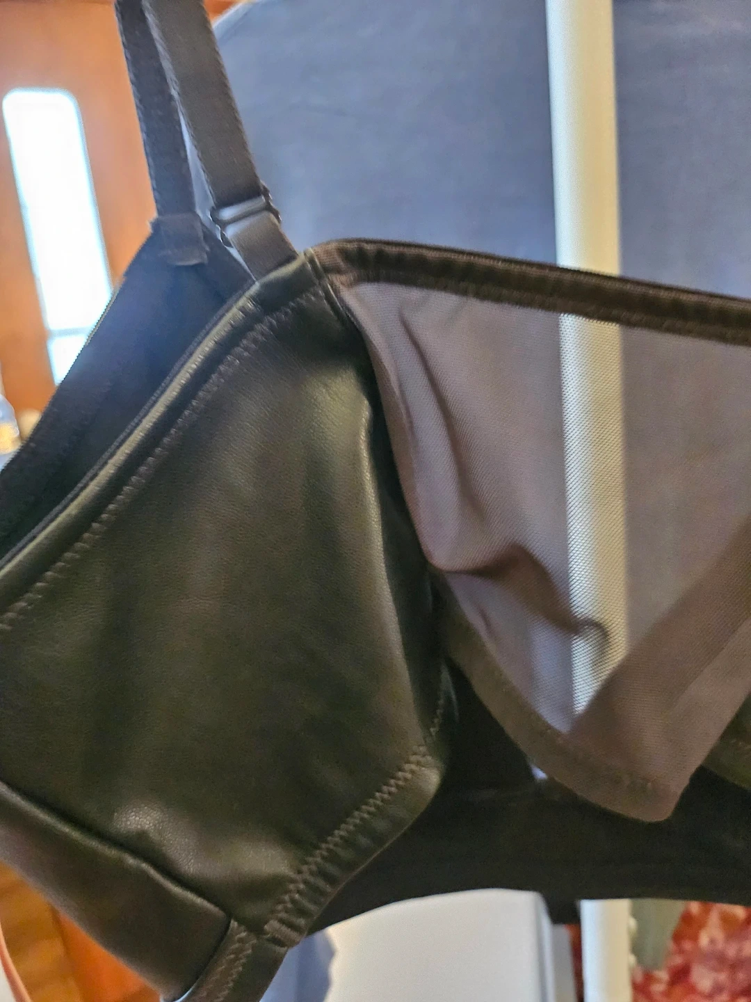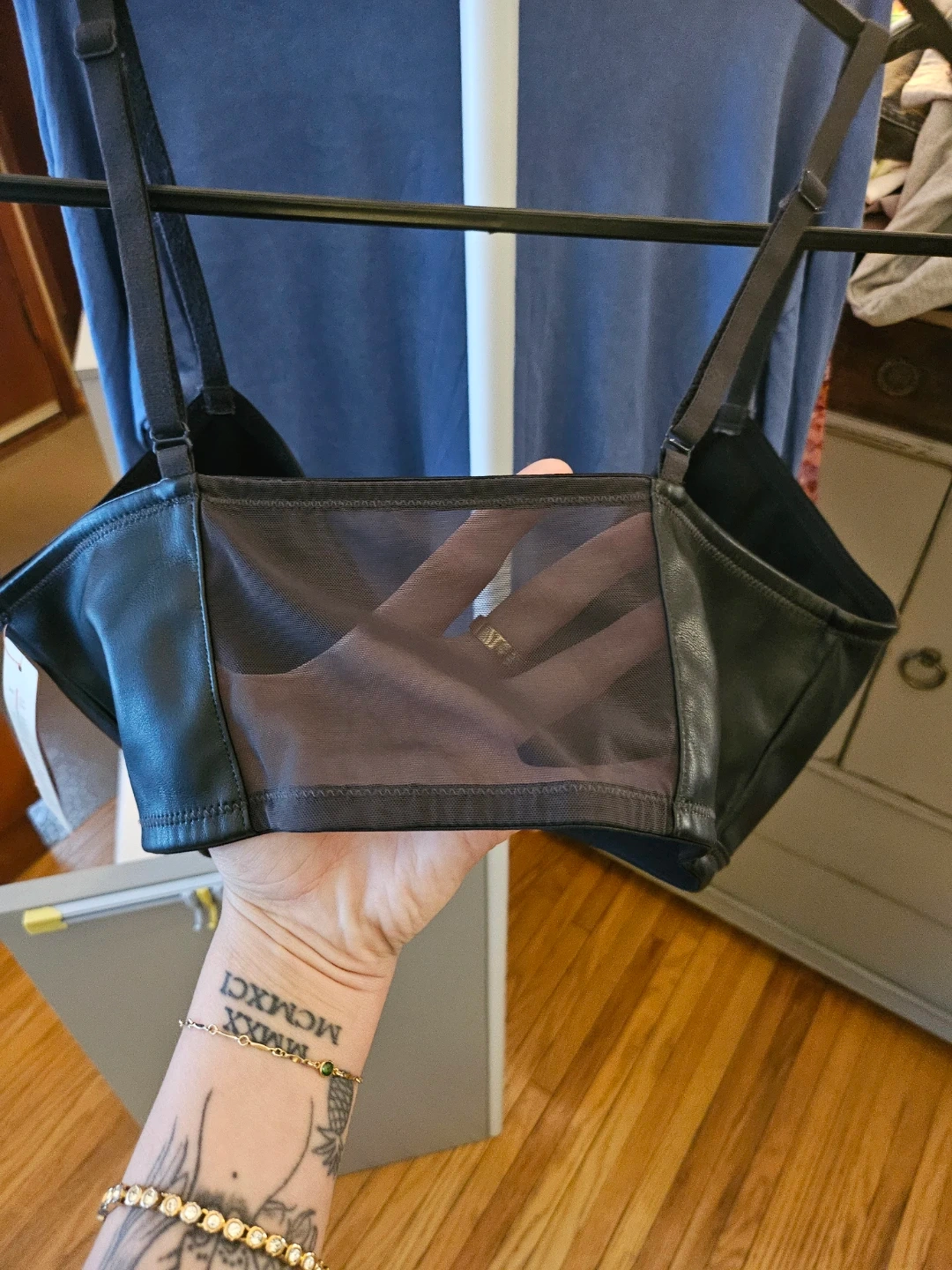 Buy & SellBlack faux leather bralette - Size LargeBlack faux leather bralette - Size Large$15This is a black bralette in size large. It is made of 90% polyester and 10% spandex. It's a stylish and comfortable piece!ConditionNewSizelargeWHERE TO MEETNorth EndView MapSELLERverifiedKateGreenbrier1364 reviews1 chats·0 favorites·15 viewsSEND CHAT TO SELLERHi Kate! I’m interested in your listing.Hi Kate! I’m interested in your listing.Get the Karrot app to chatSign In to chat