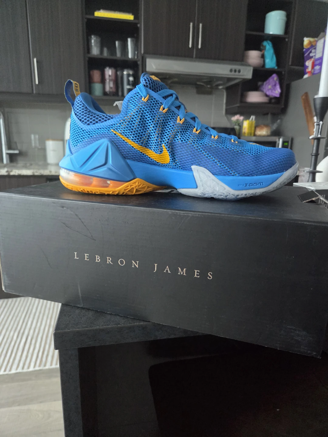Nike LeBron XII 12 Low Blue/Gold Size 9.5 with Box
