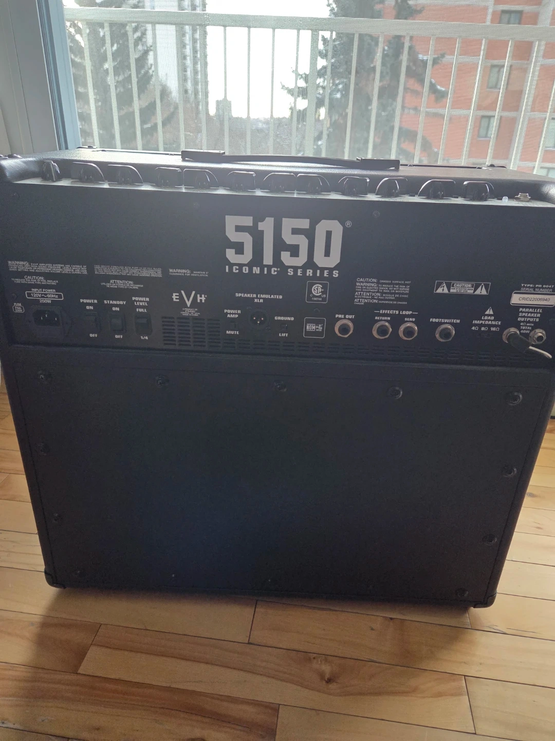 Selling an EVH 5150 Iconic Series guitar amplifier 1x12. It's in great shape and ready to rock! This amp is part of the iconic series, known for its high gain and powerful sound. Perfect for any guitarist looking for that classic EVH tone. Small scuffs from moving but in amazing shape. No huge gain playing. Used for home recording.