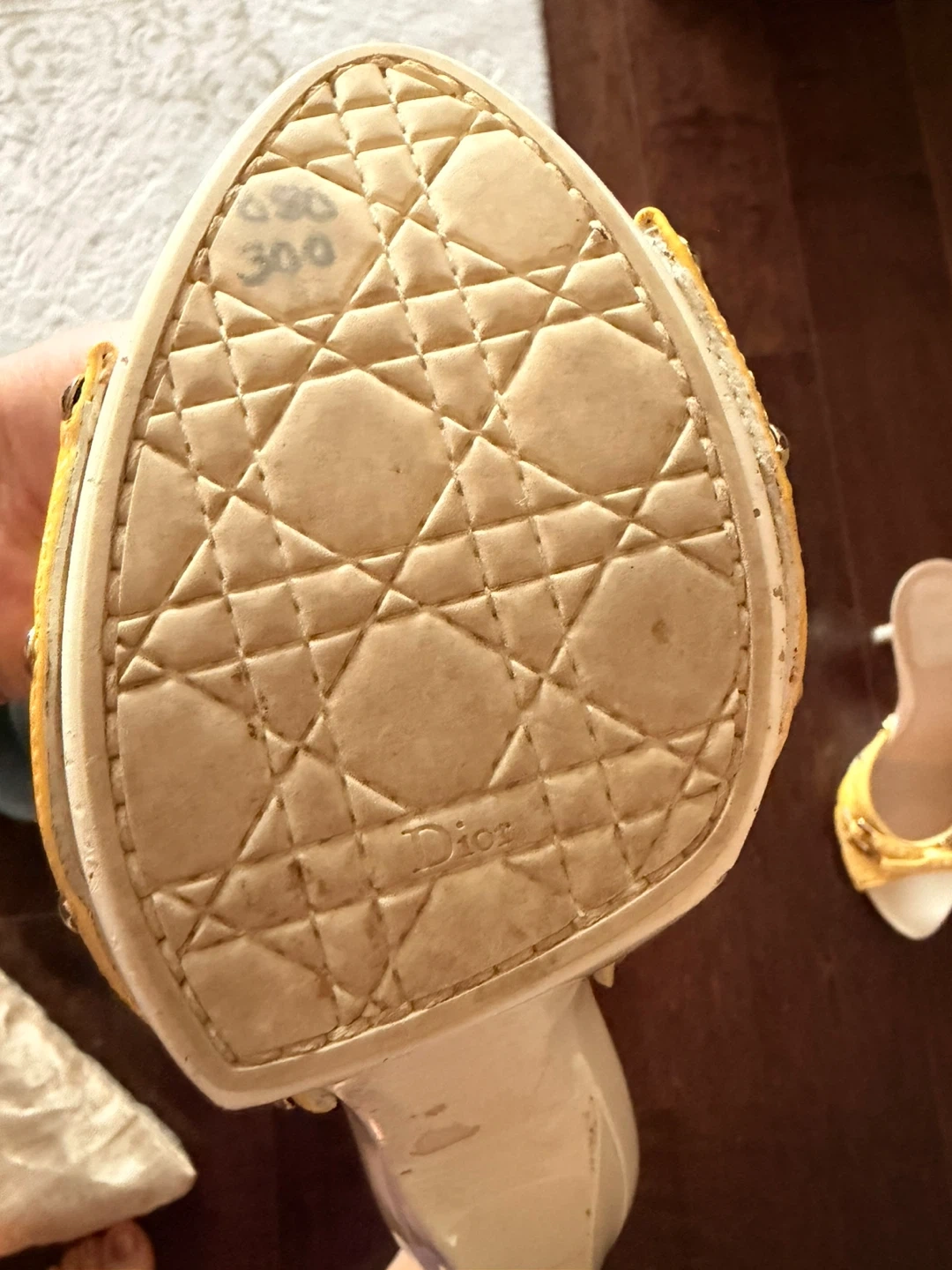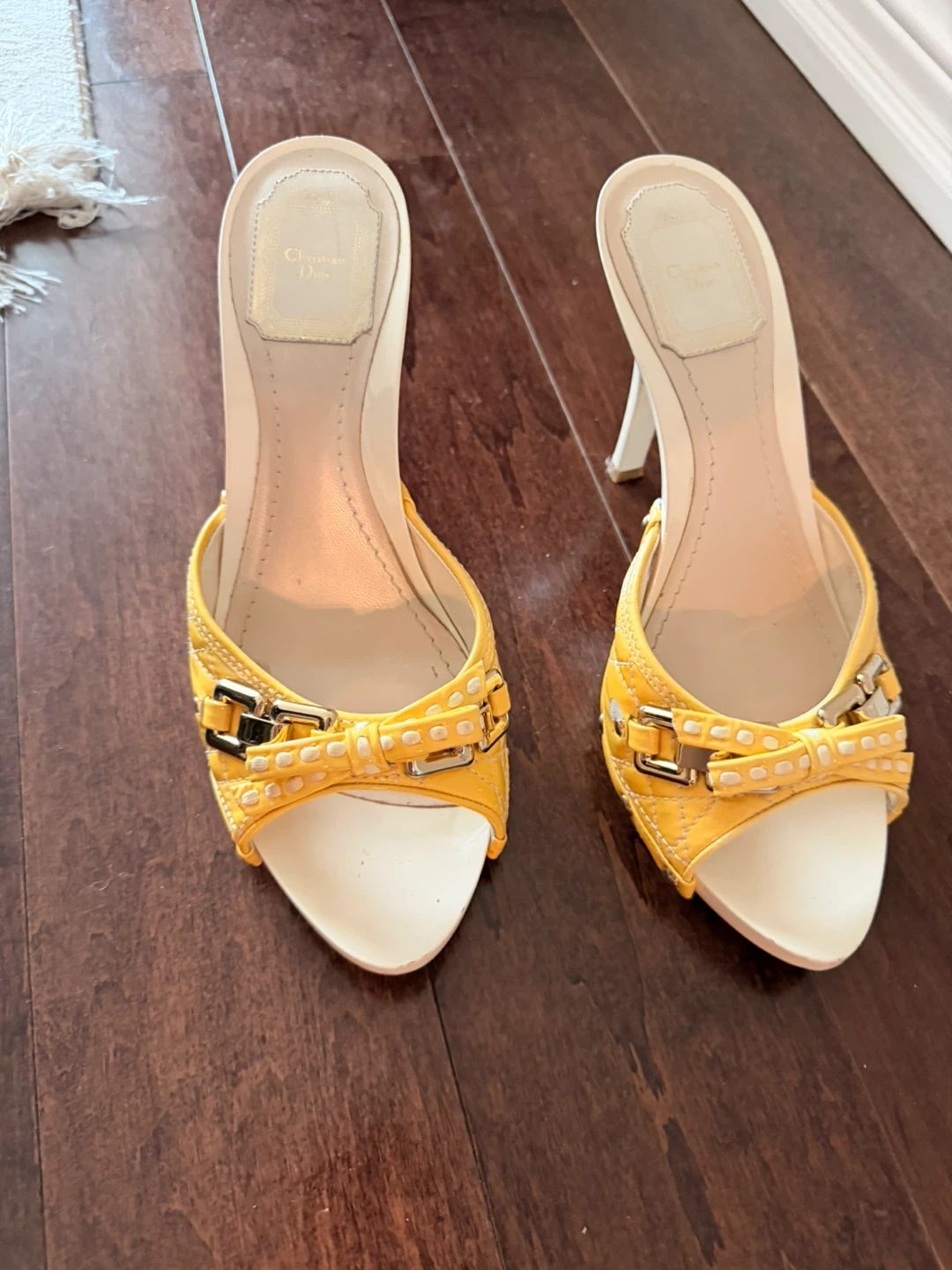 Selling a pair of Christian Dior heels in a vibrant yellow colour! They're in great condition and ready for a new owner. Perfect for adding a pop of colour to any outfit