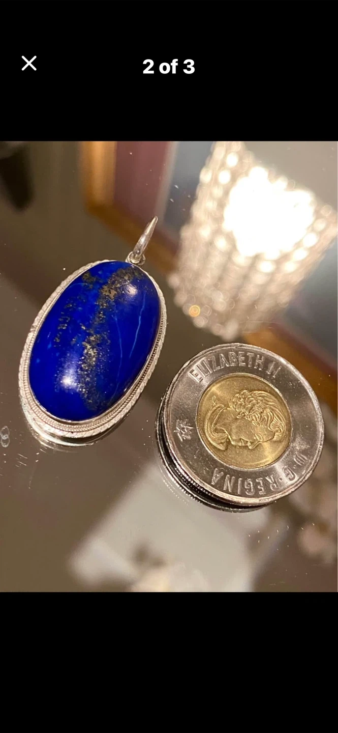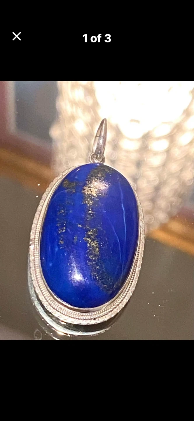 💙Beautiful Estate large lapis lazuli pendant with a lovely royal blue colour! It is in a Sterling Silver setting and brand new. Perfect for adding a touch of elegance to any outfit!💙